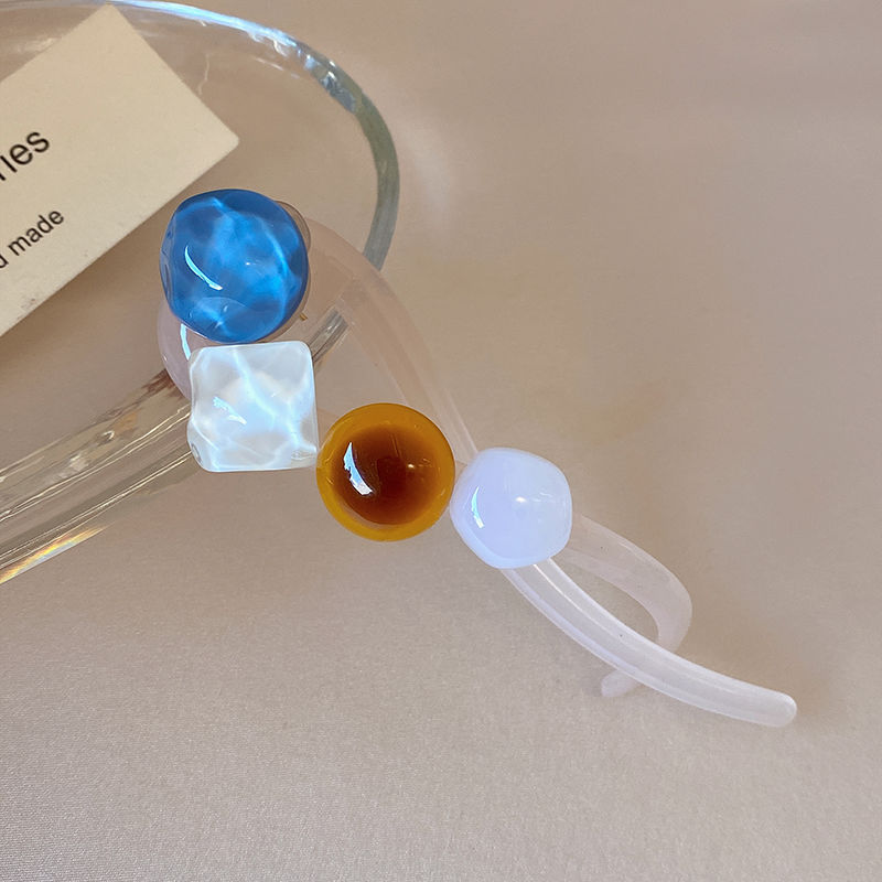 cn014# square diamond beads banana clip-blue and white