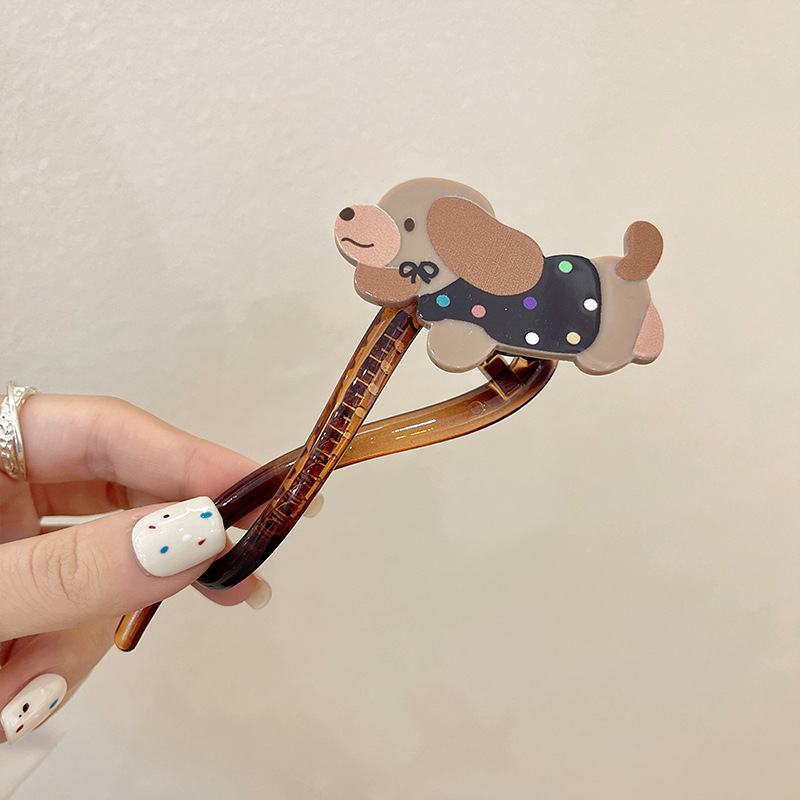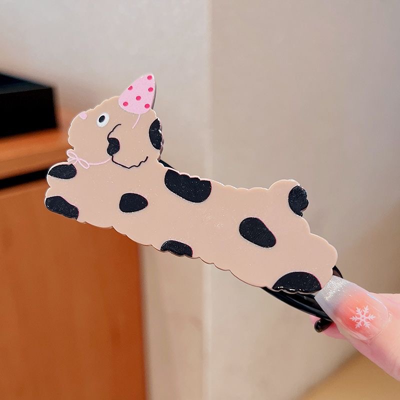 cn008# polka dot dog banana clip (10cm)