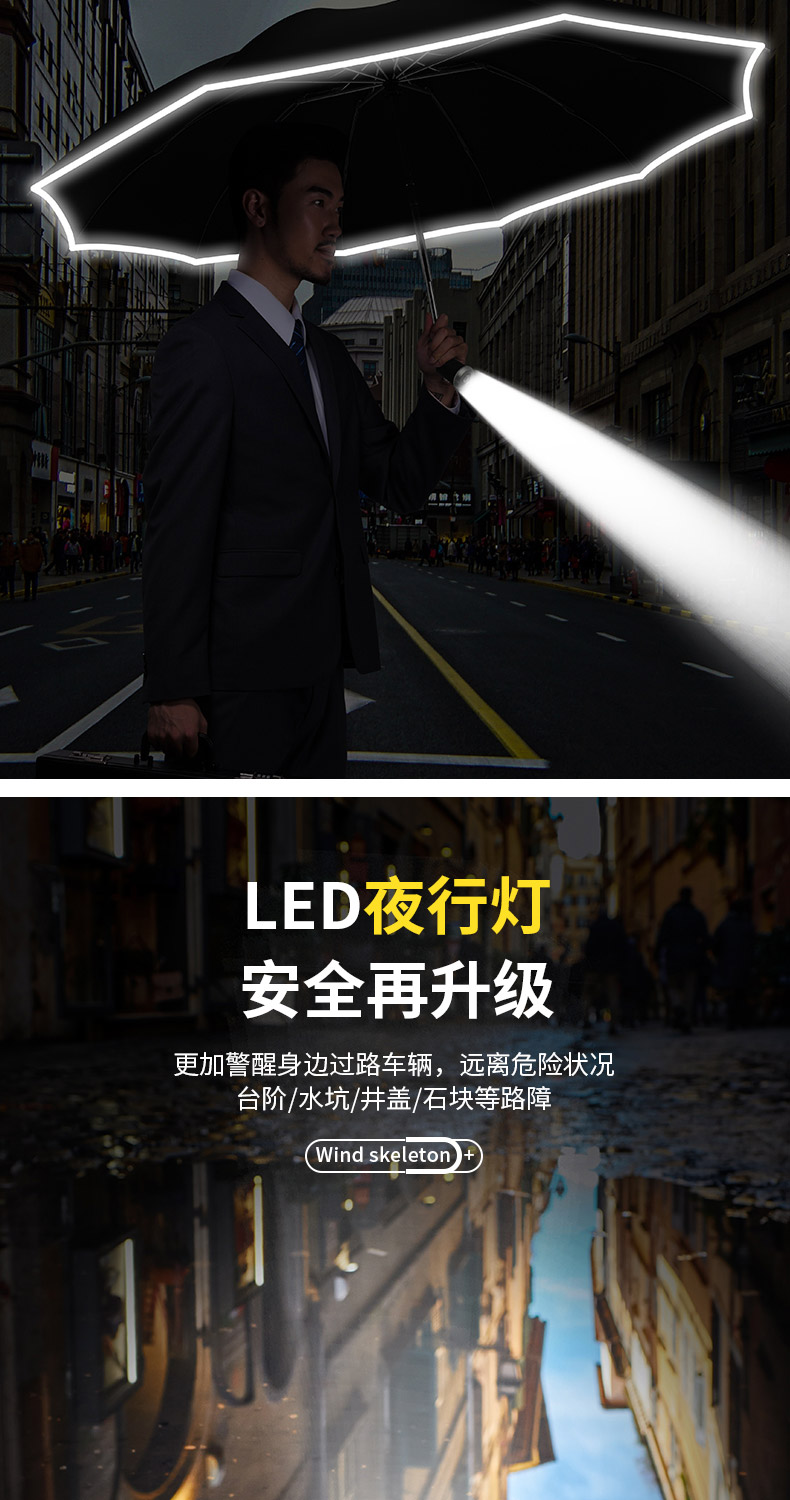ten-bone automatic aluminum alloy [reverse + vinyl + led light] black