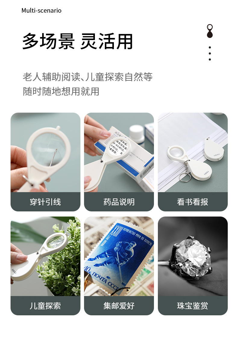 white (portable folding magnifying glass)