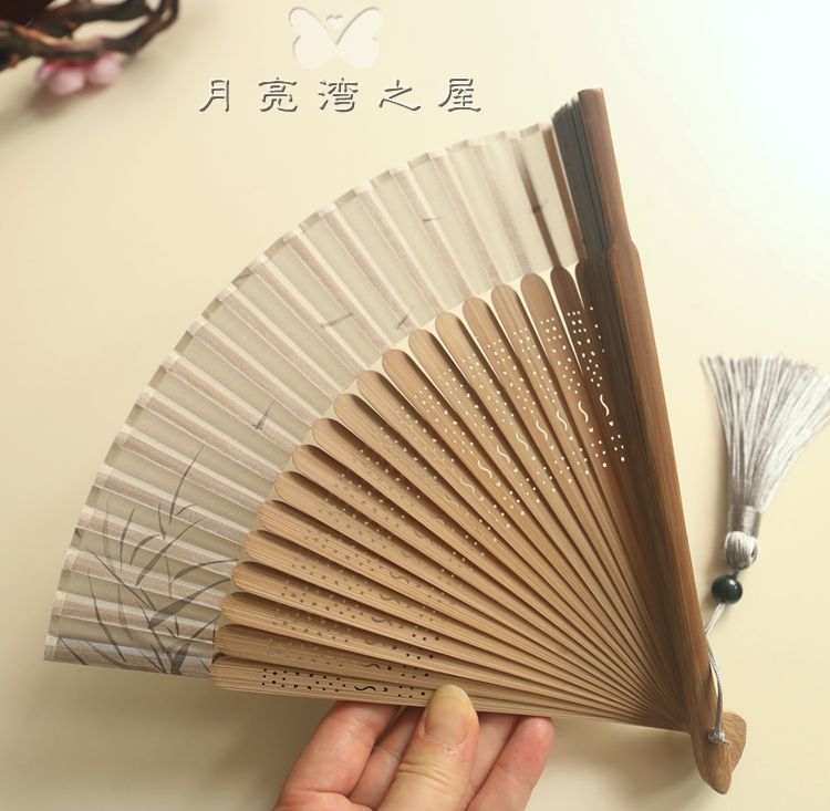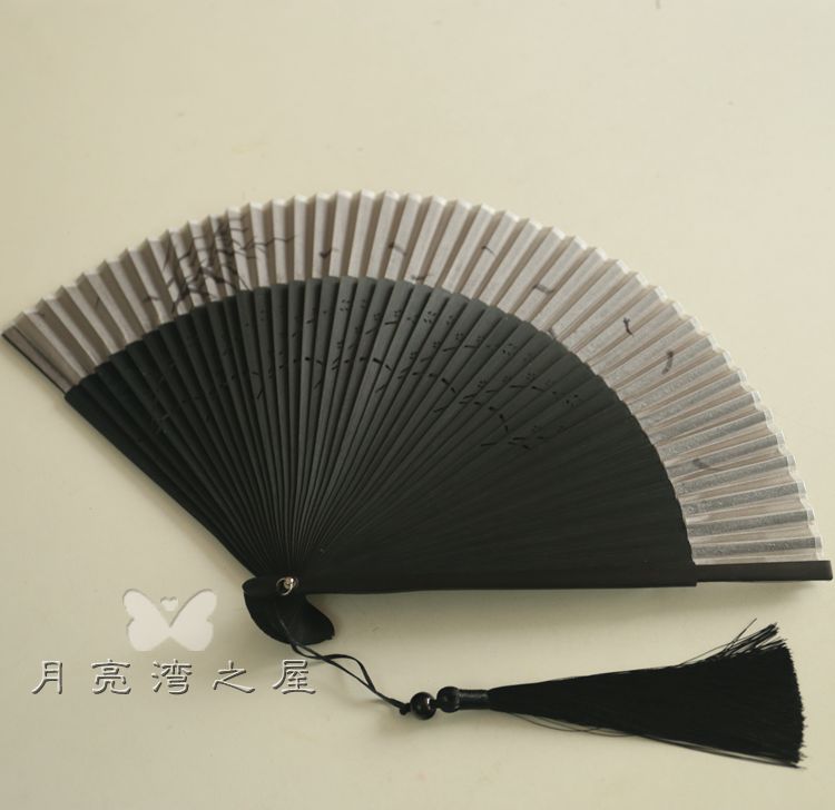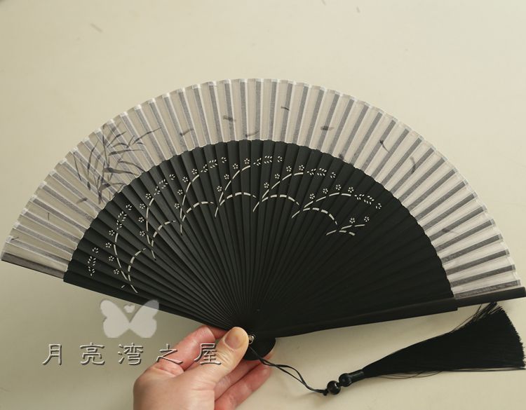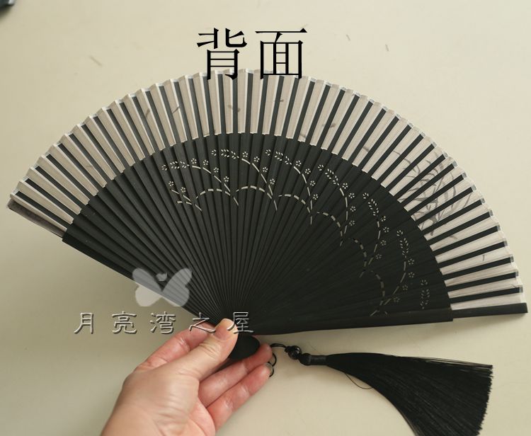 tejie cotton black water jade + tassel fan cover 23cm