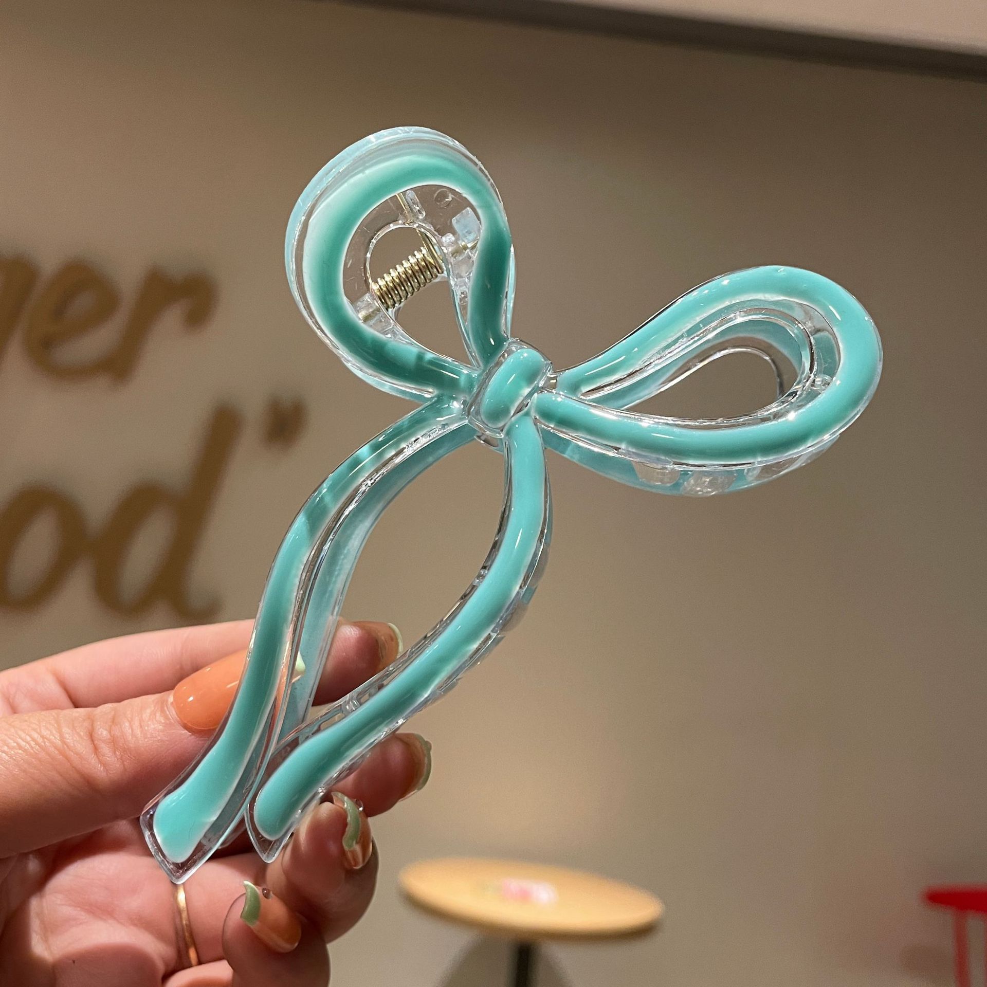 bright oil green-blue bow tie shark clip (11cm)