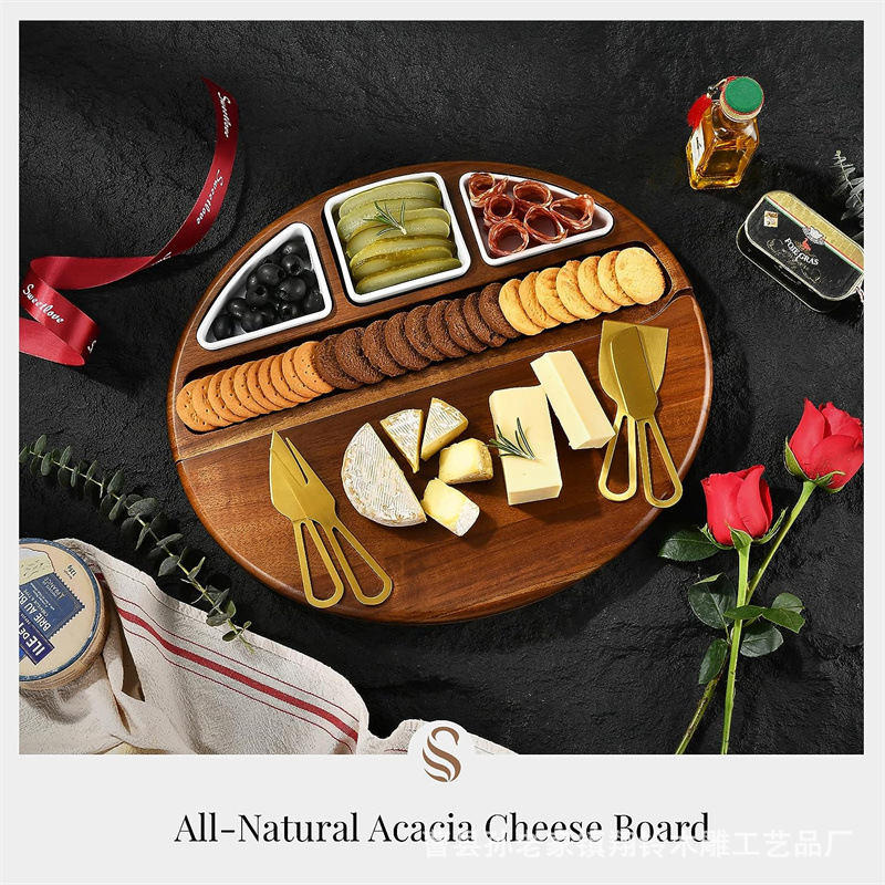 retro wood cheese chopping board household cooked food board hotel tableware cheese cheese plate with ceramic bowl knife and fork chopping board