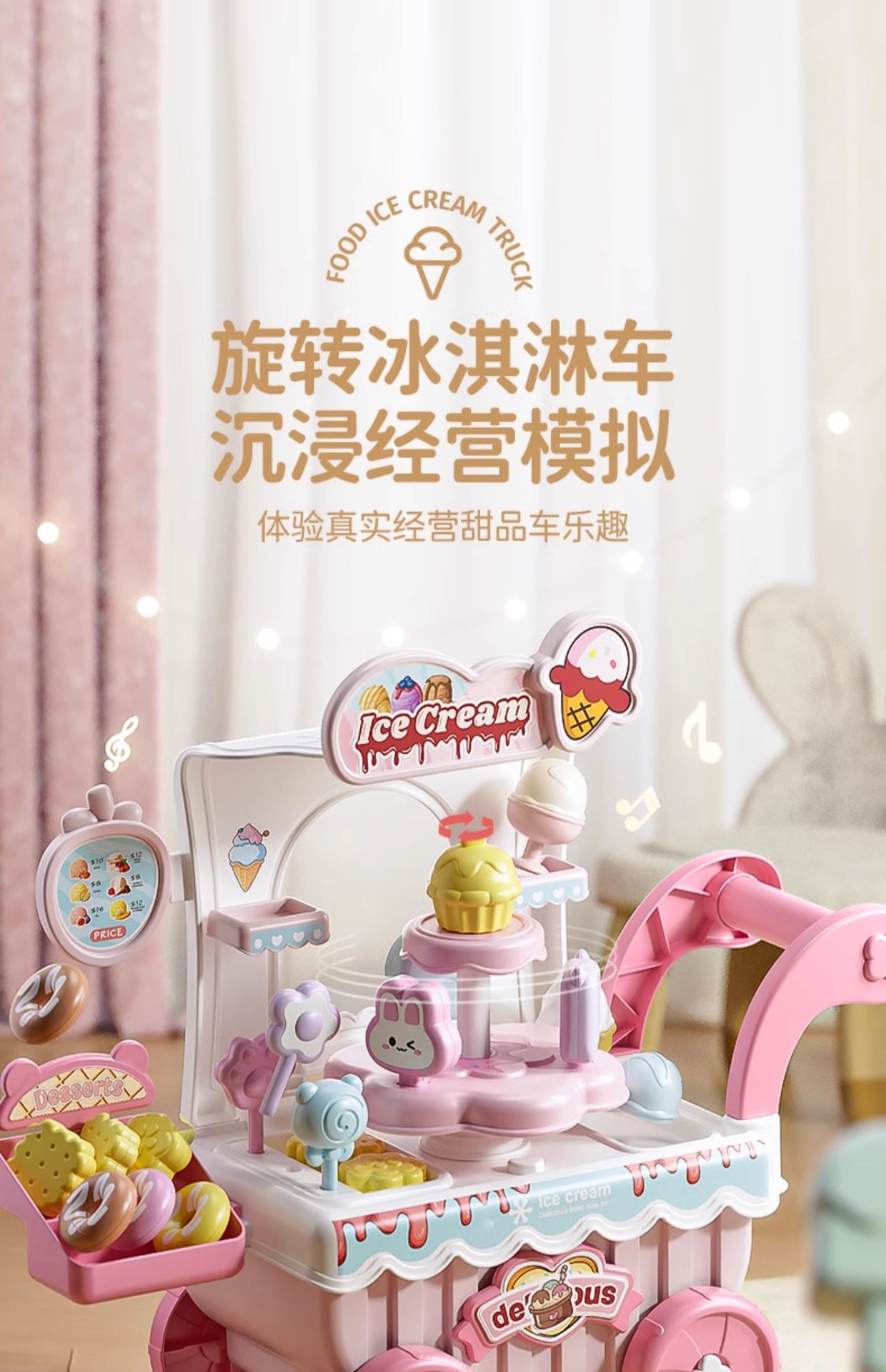 ice cream candy cart✨cherry powder + shelves [49-piece set/rotation/sound and light/battery delivery]]