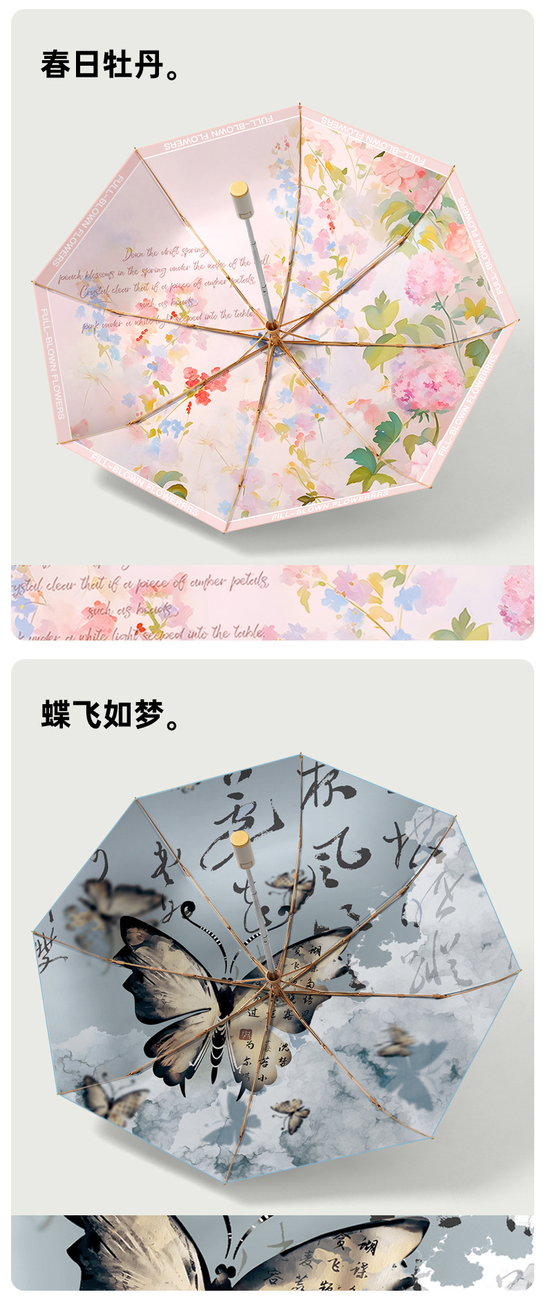 triple automatic umbrella double-deck umbrella aluminum alloy skeleton spring peony