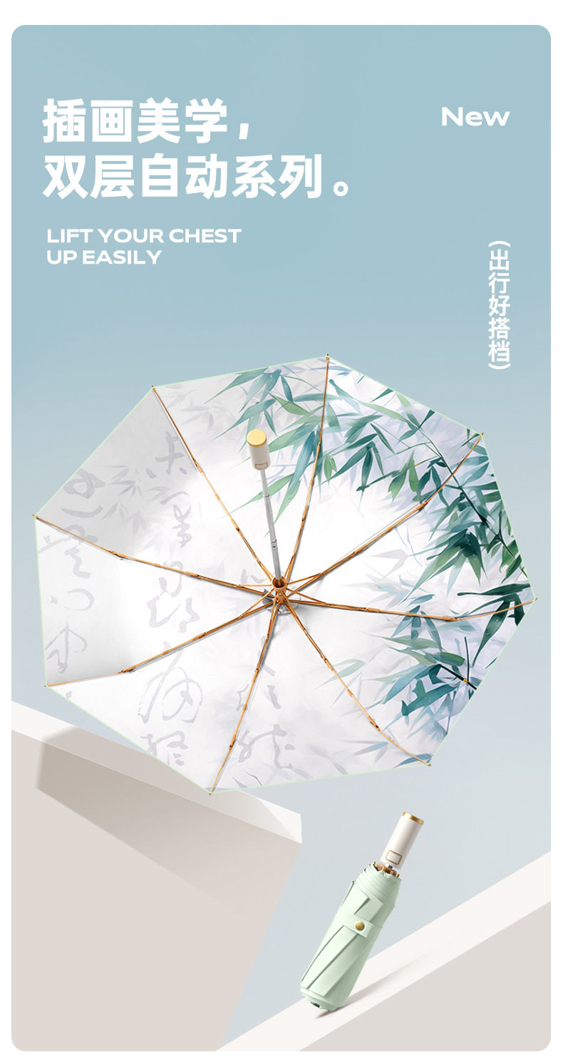triple automatic umbrella double-deck umbrella aluminum alloy skeleton golden silk bamboo stone