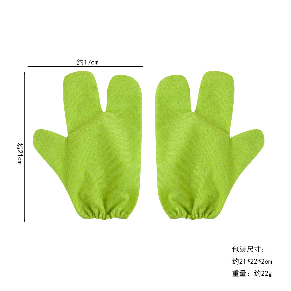 terry fabric green three-finger gloves