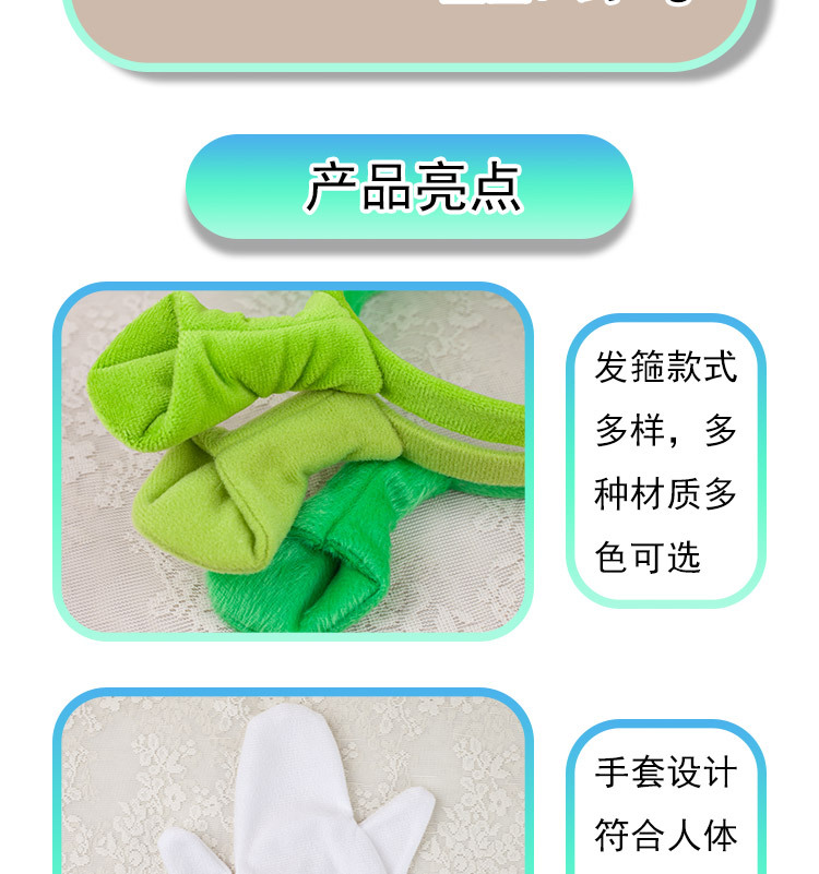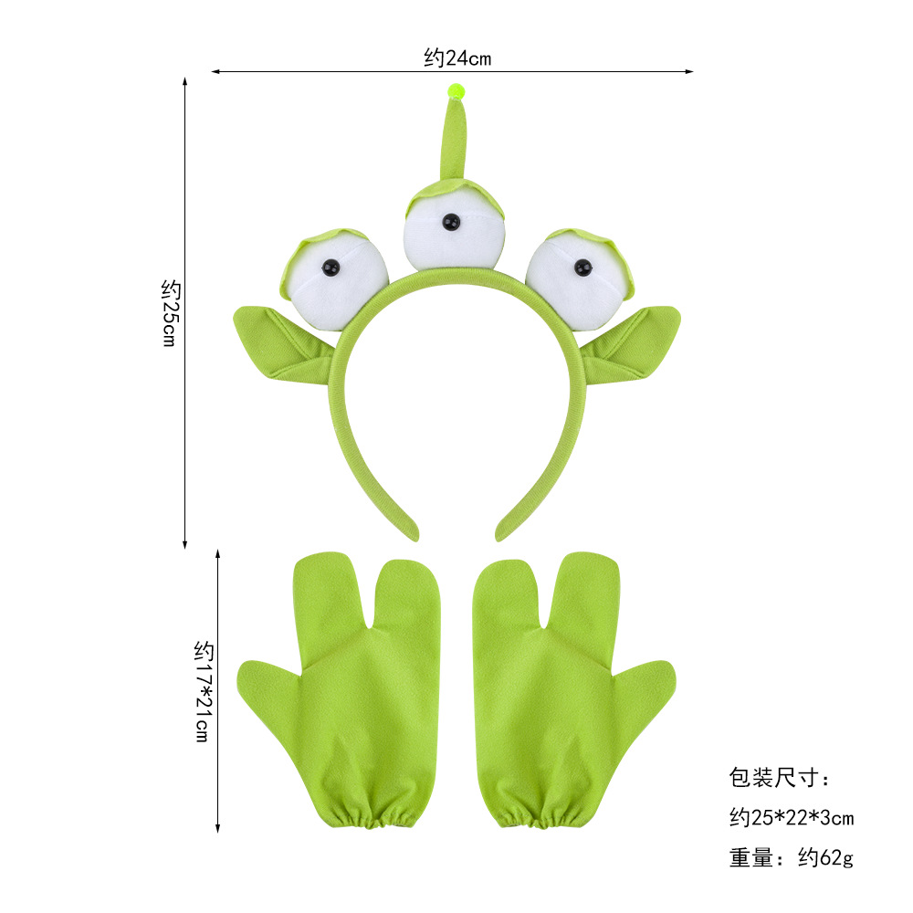 three-eyed alien headband + terry fabric green three-finger gloves