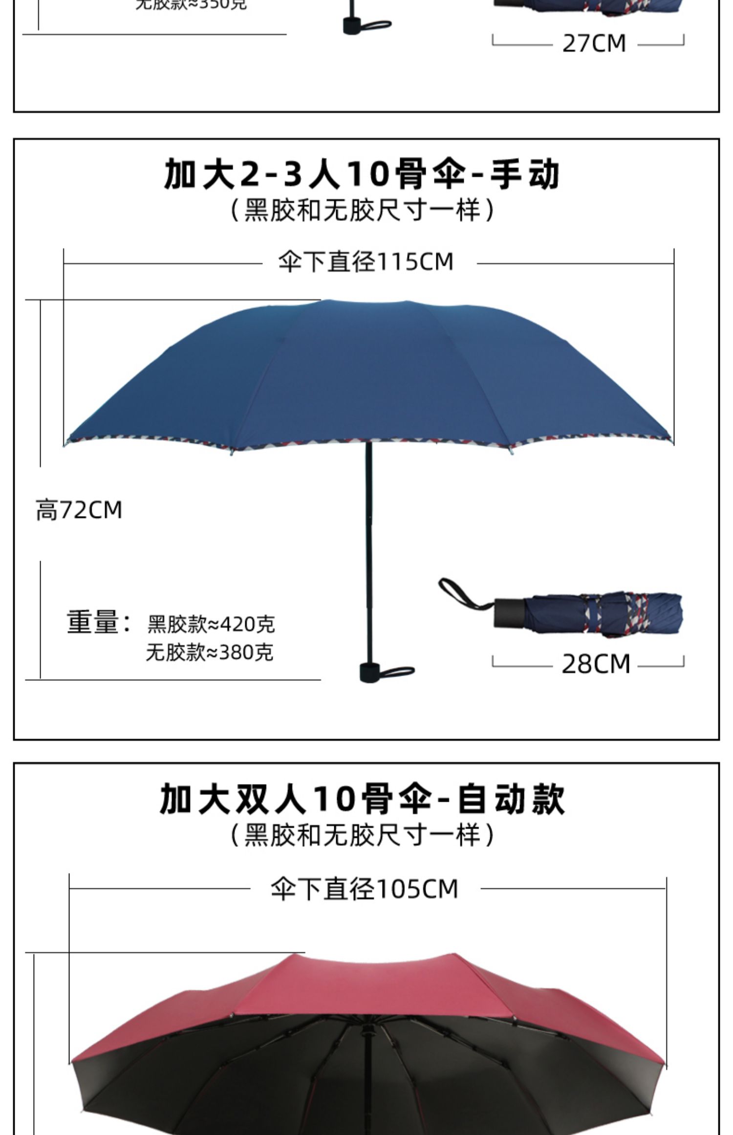 12 bone black glue-navy blue manual-rain and rain dual use