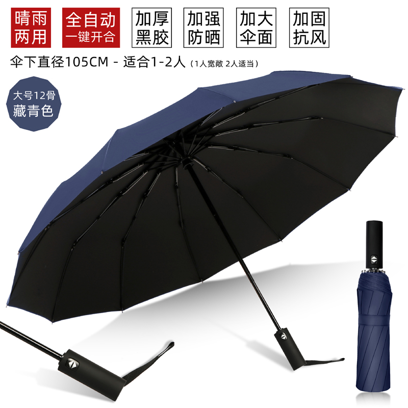 automatic double 12-bone black glue-navy blue automatic-rain and rain dual-use