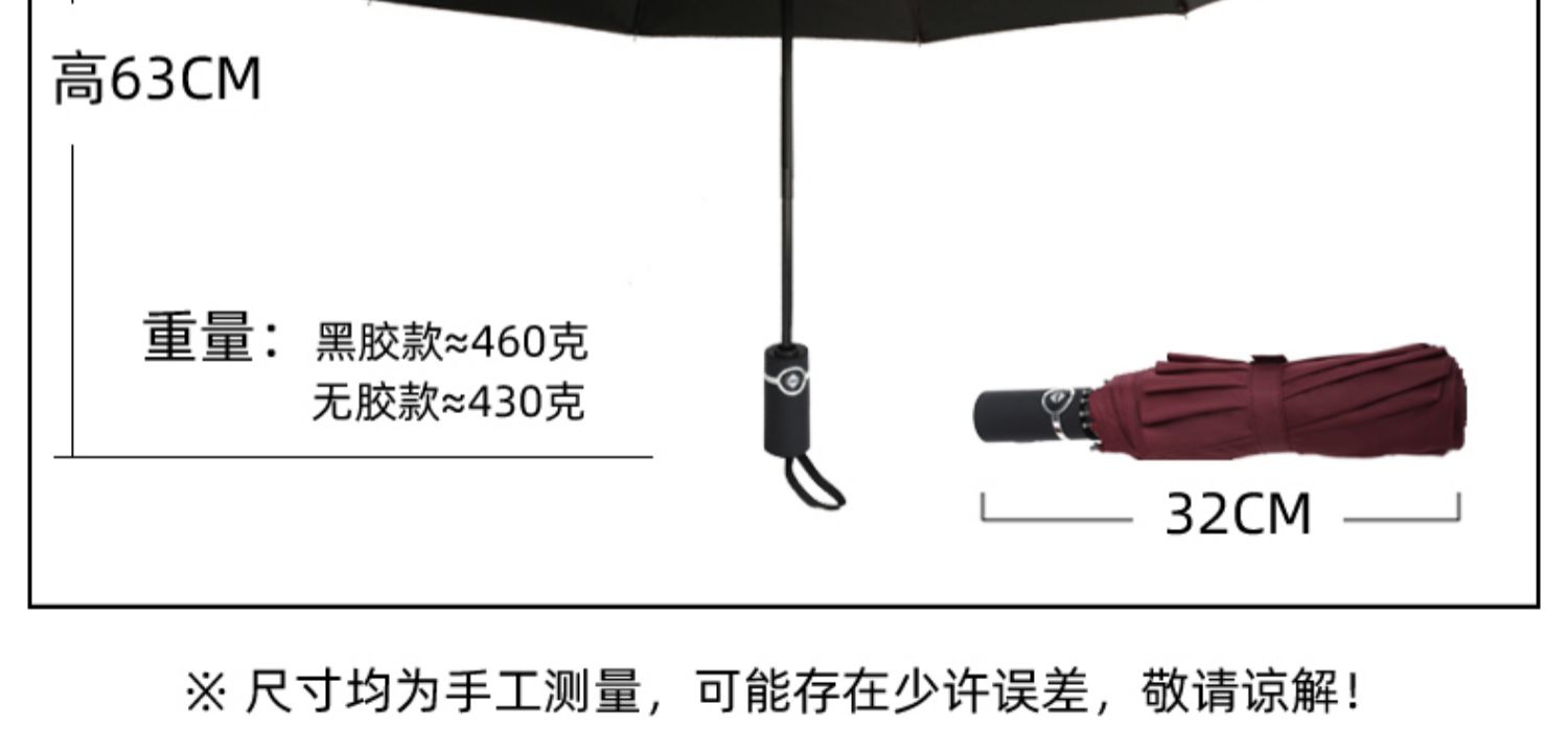 10 bone black glue wine red automatic-sunny and rainy dual-use