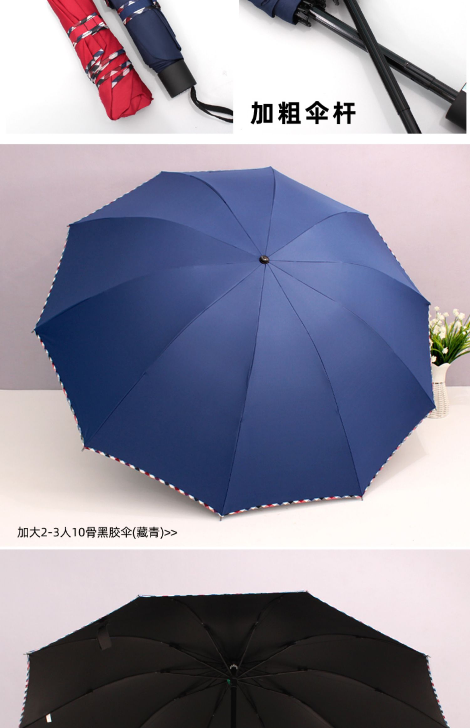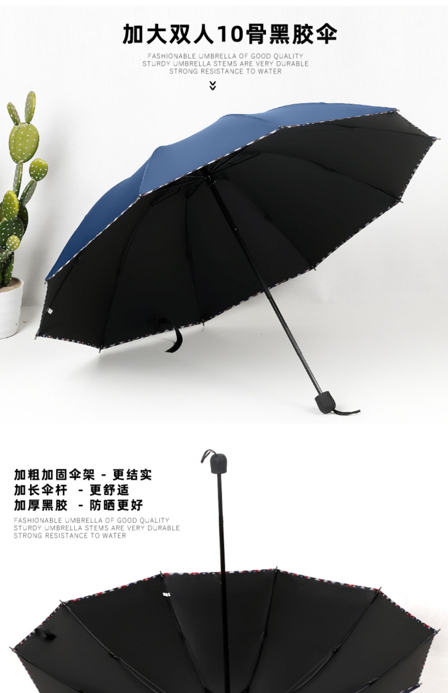 large 10-bone black glue navy blue manual-rain and rain dual-use
