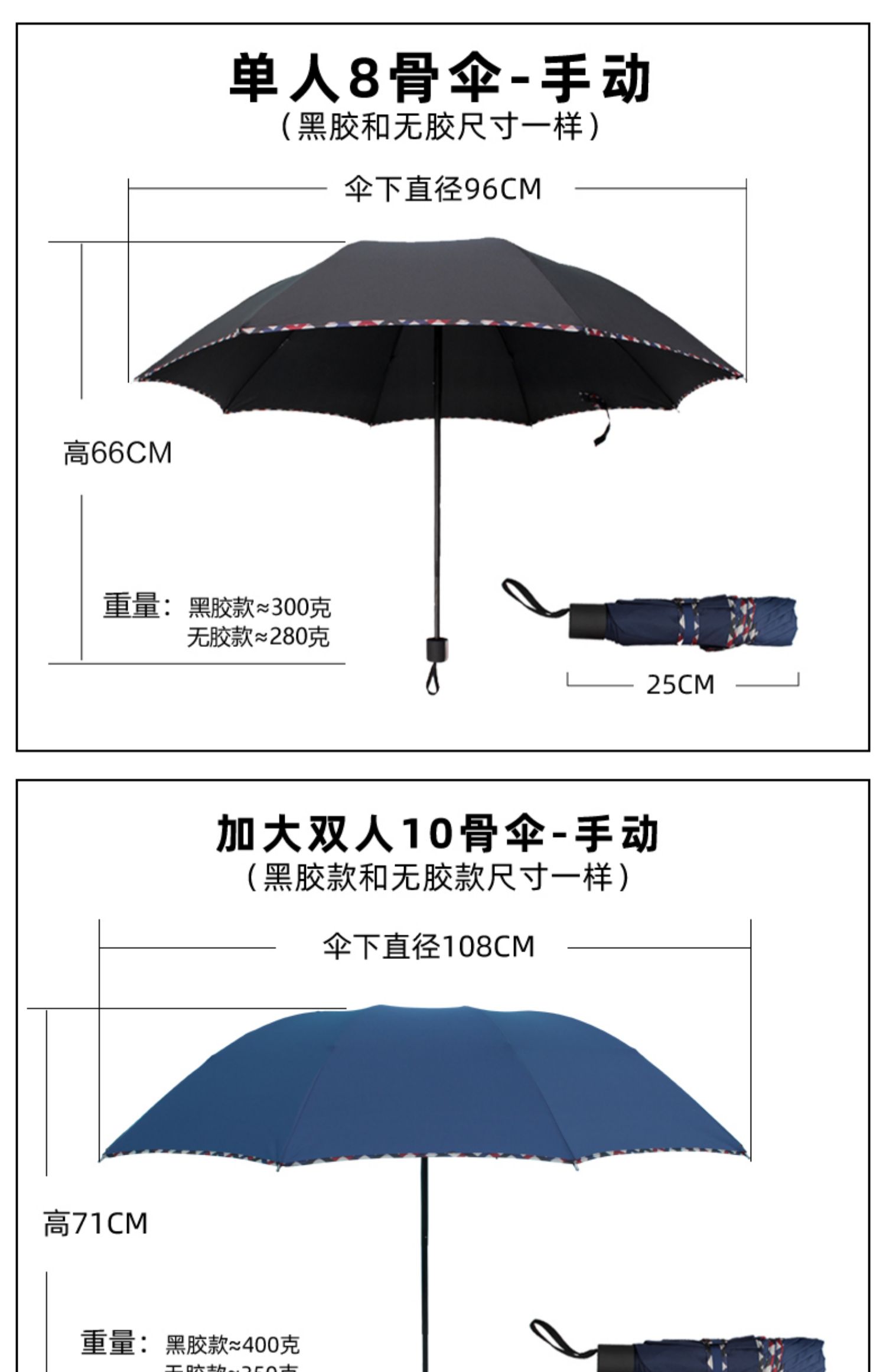 double 10-bone black glue navy blue manual-rain and rain dual-use