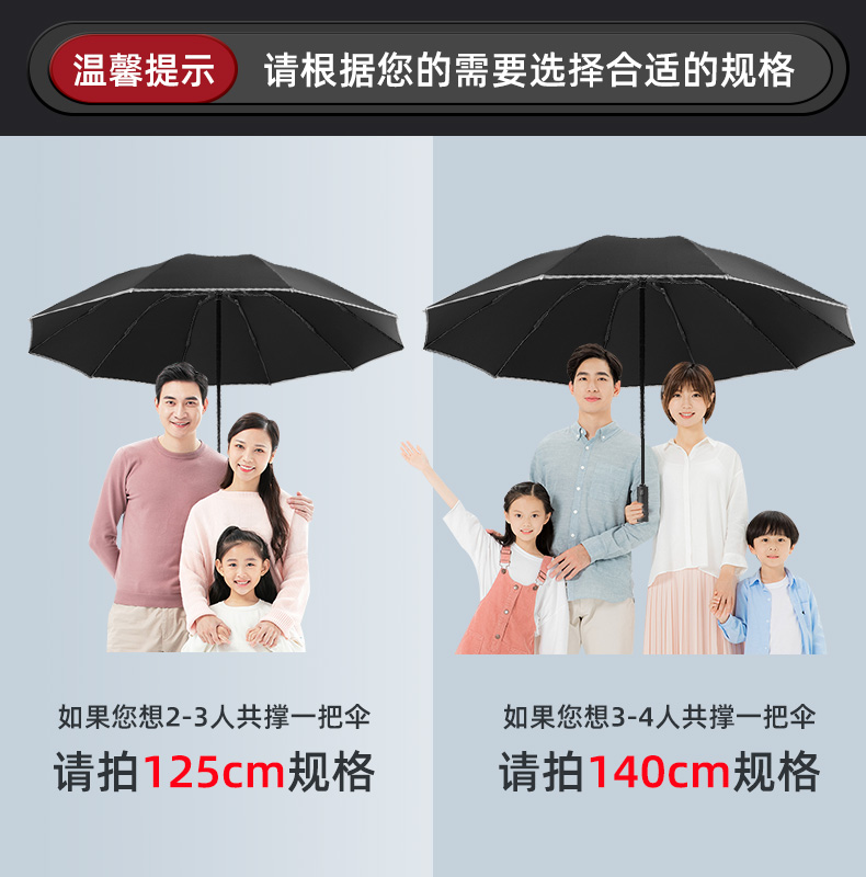 12 bone reverse 140cm black + vinyl thickened 3-4 people