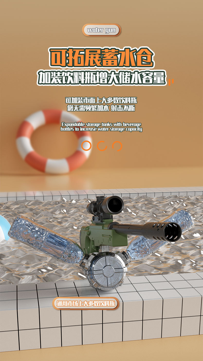 double nozzle electric water gun-desert color [large capacity external water bottle]]