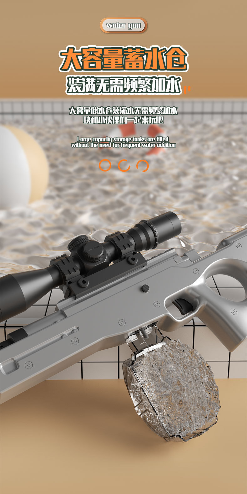 awm electric water gun-gray [large capacity external water bottle]]