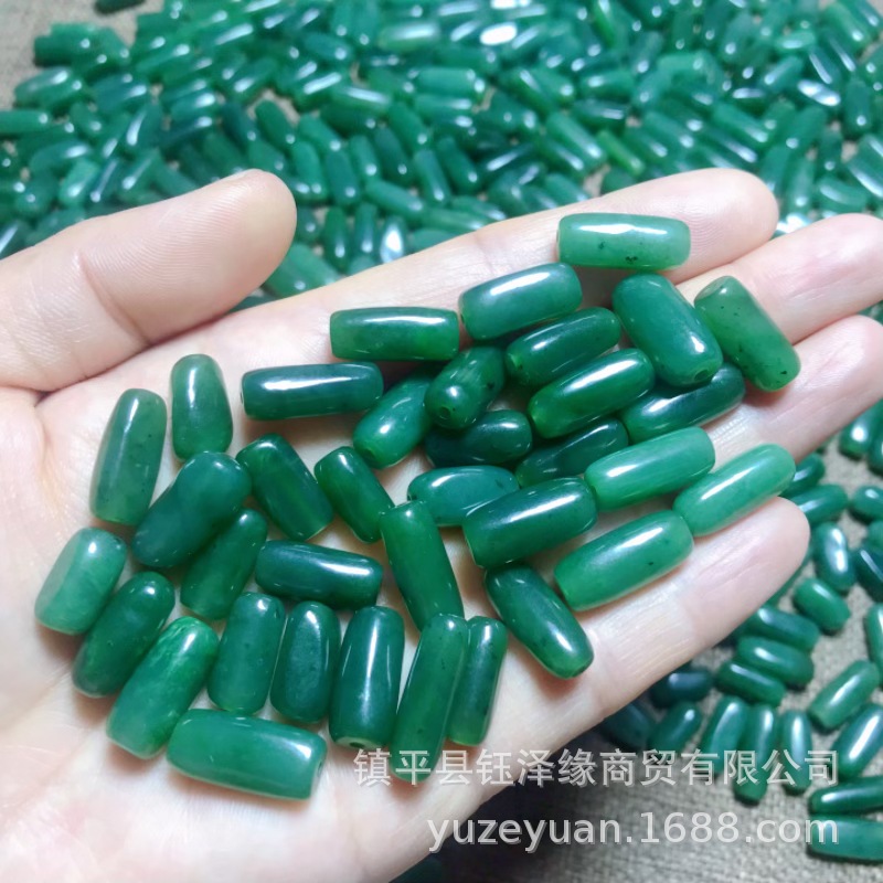 selected hetian jade green jade long beads