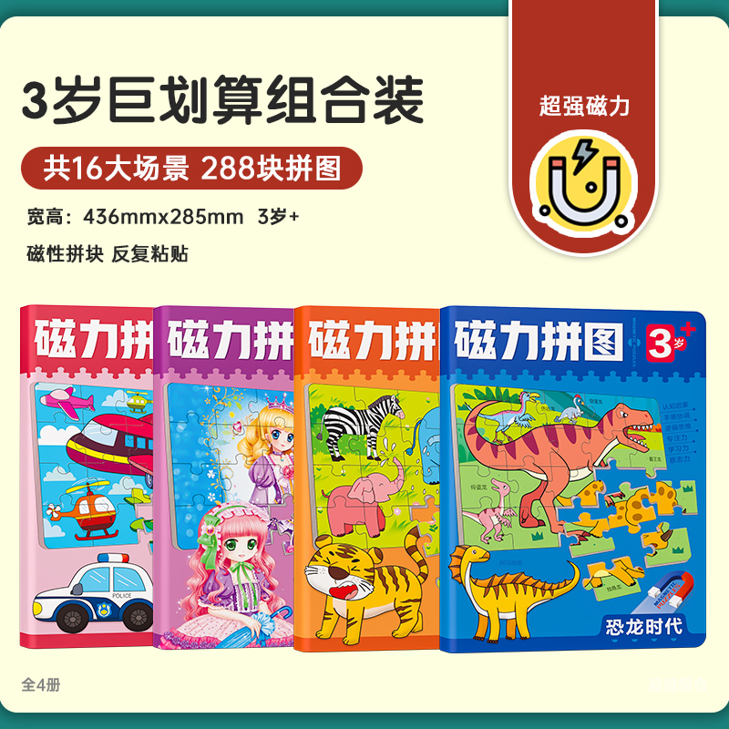 [2-5 years old super large book 4 volumes] dinosaur + princess + animal + traffic