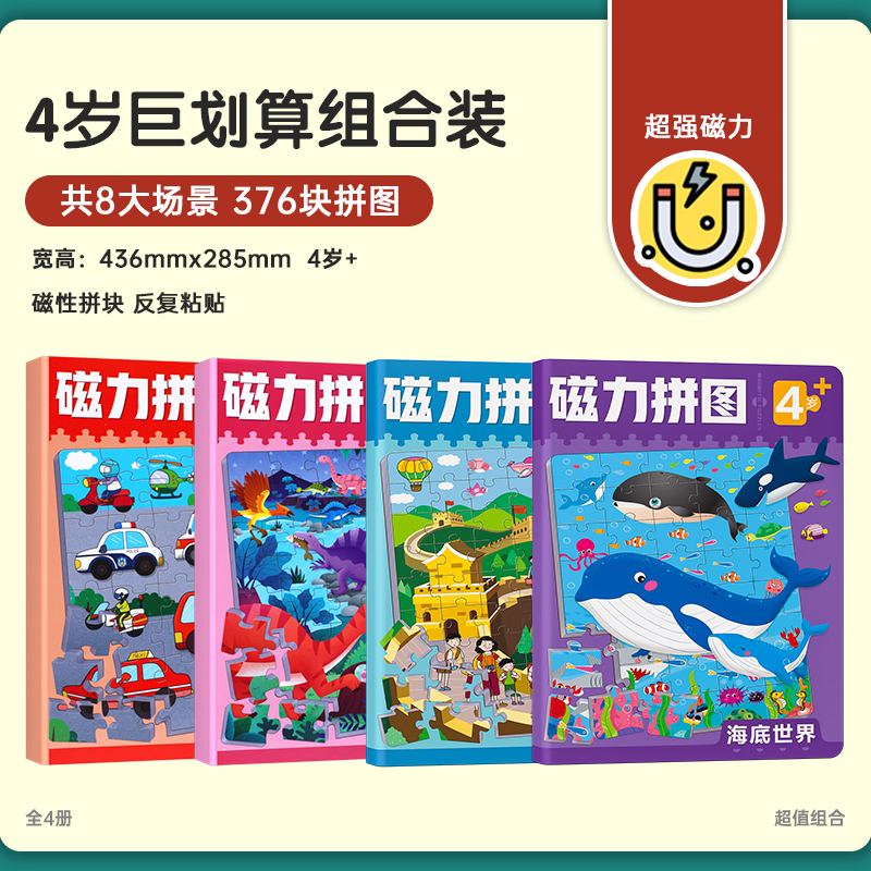 [3-6 years old super large book 4 volumes] transportation + dinosaur + seabed + landscape