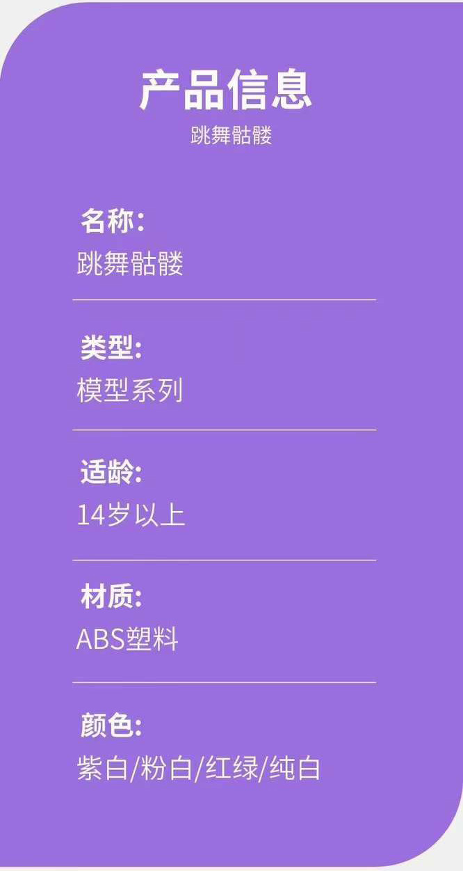 dancing skull [purple-white] 17cm