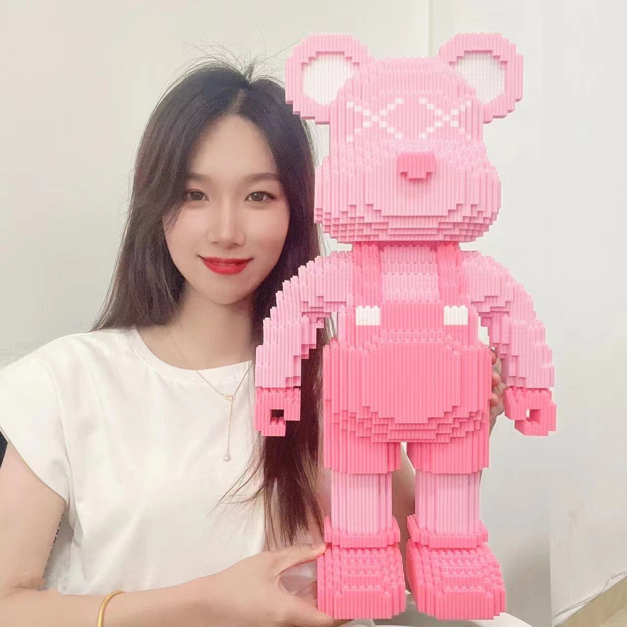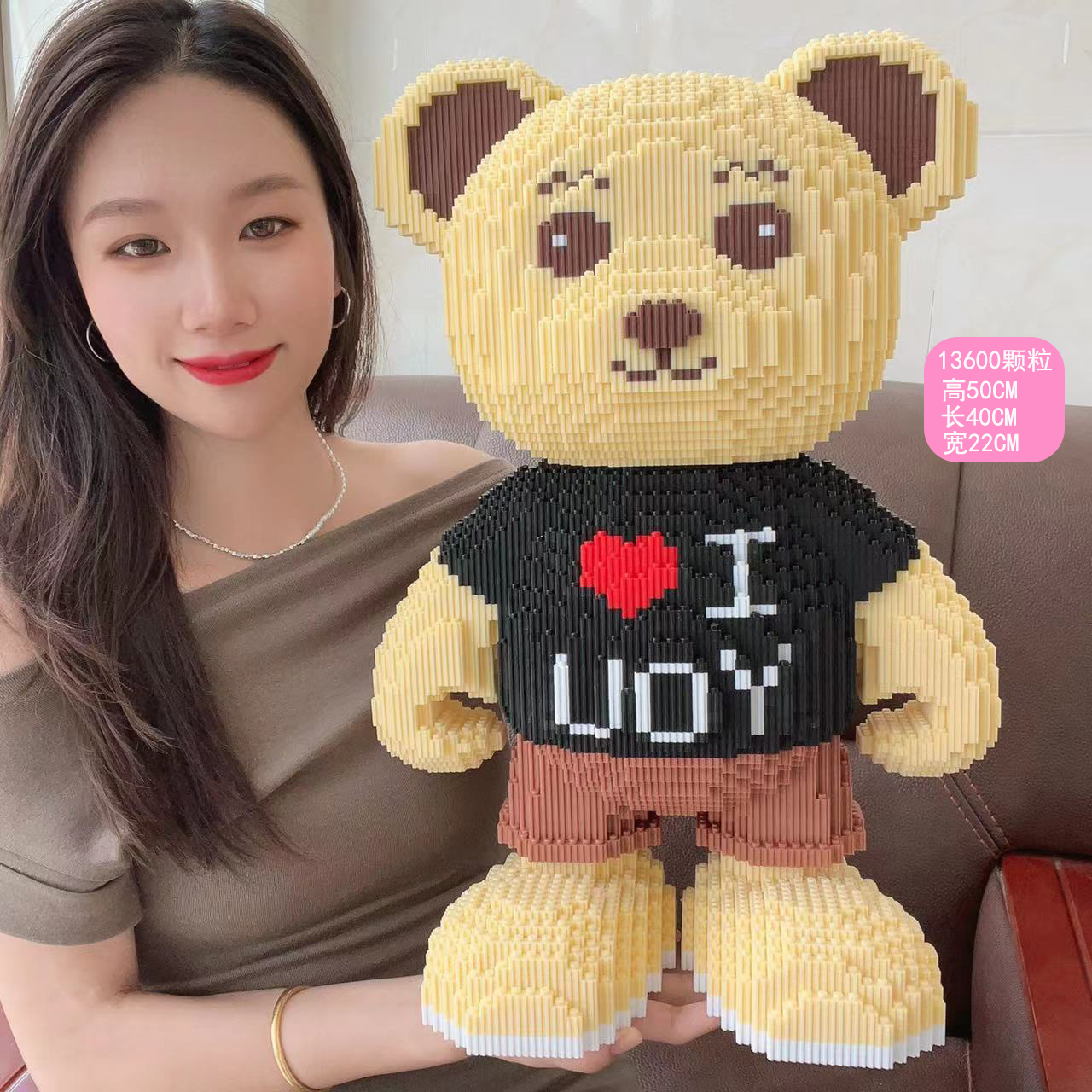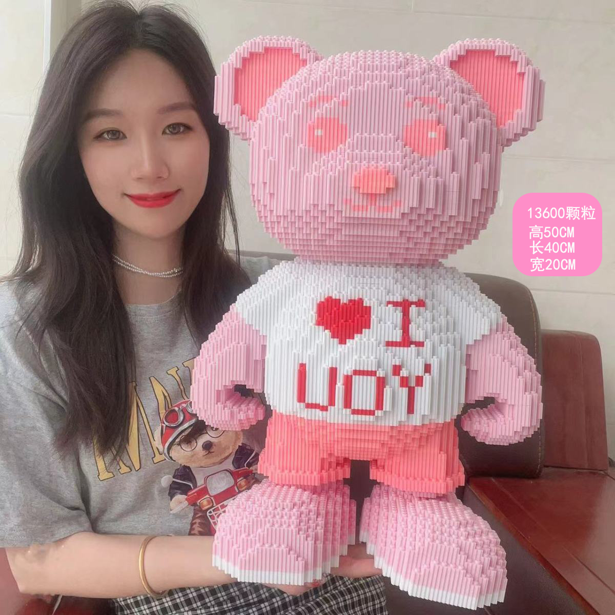 extra large 50cm love pink bear [send building block hammer]]