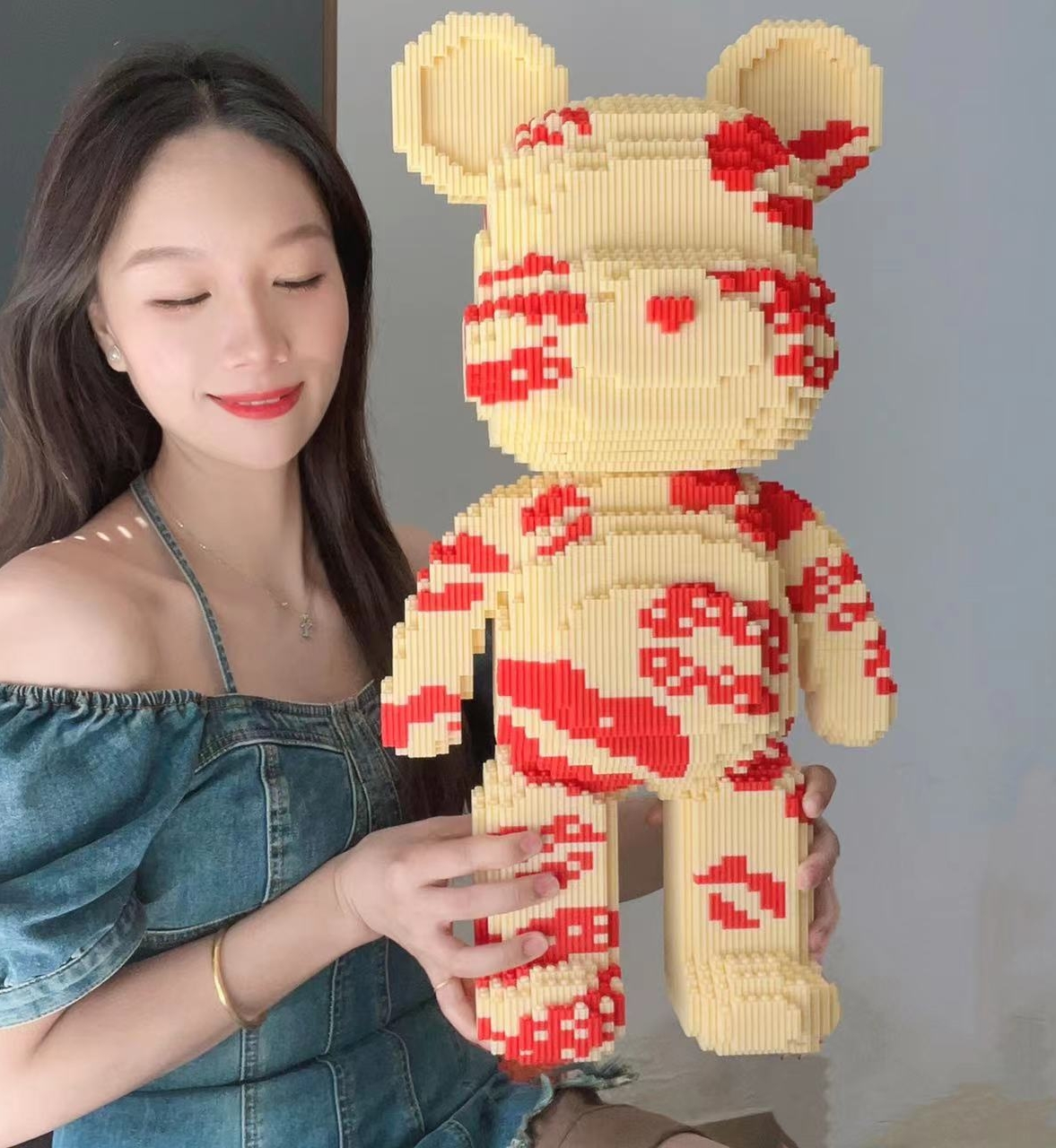 extra large 50cm chinese red violent bear [send building block hammer]]