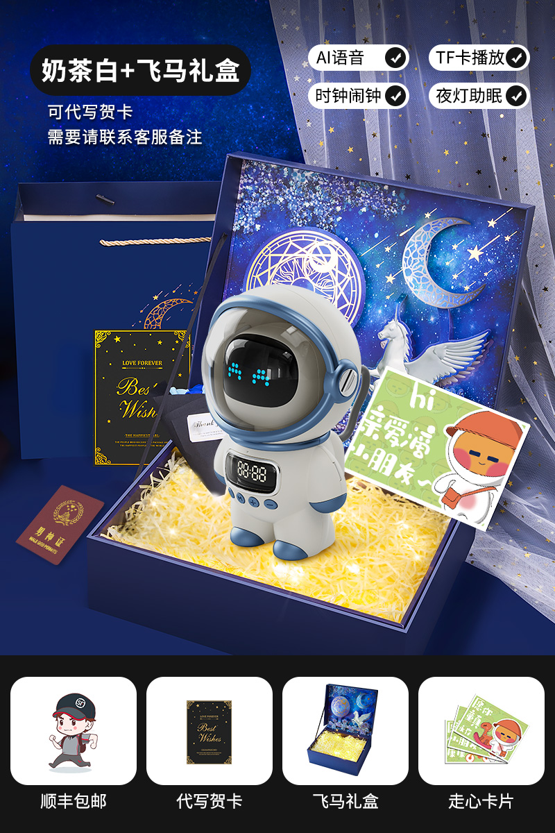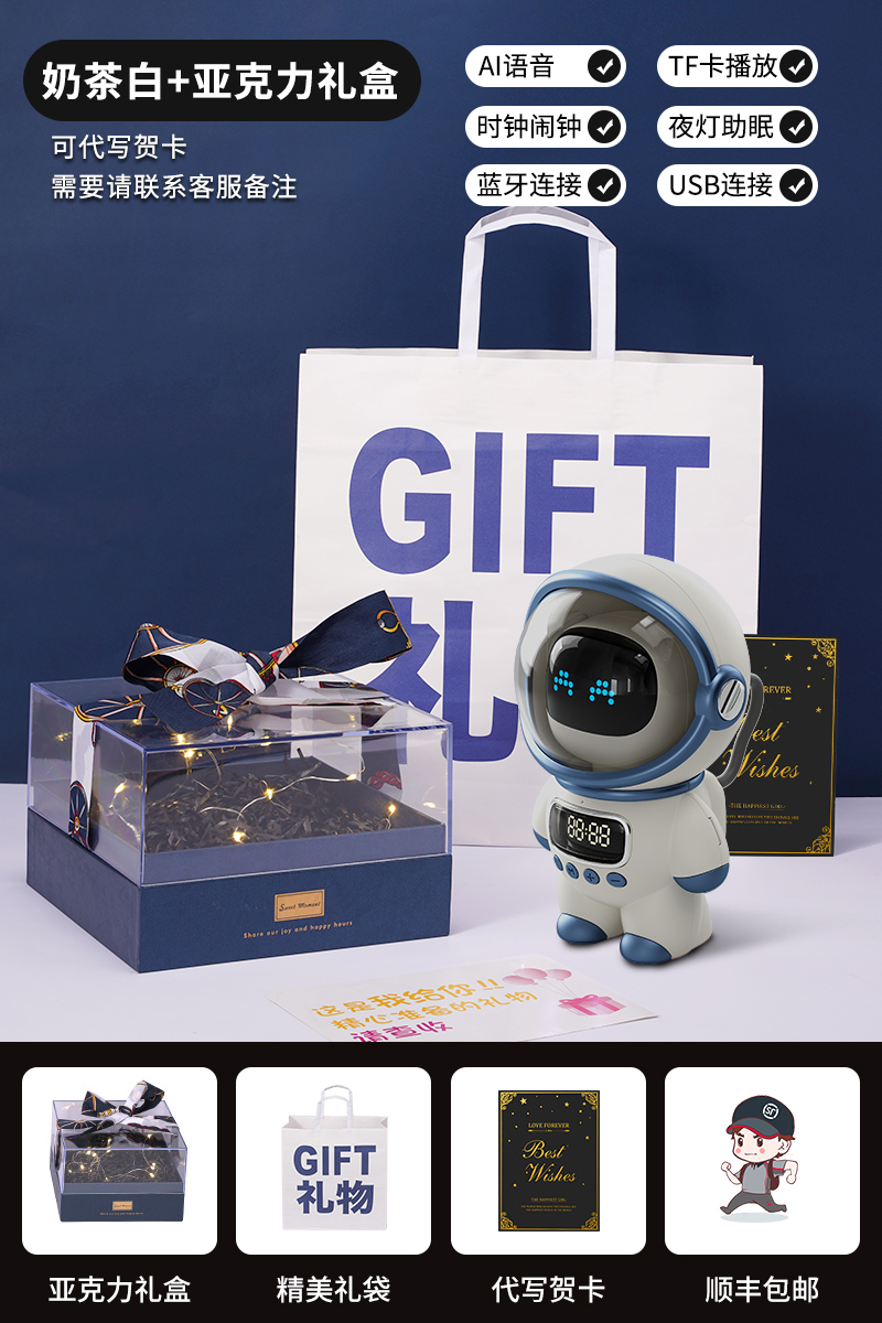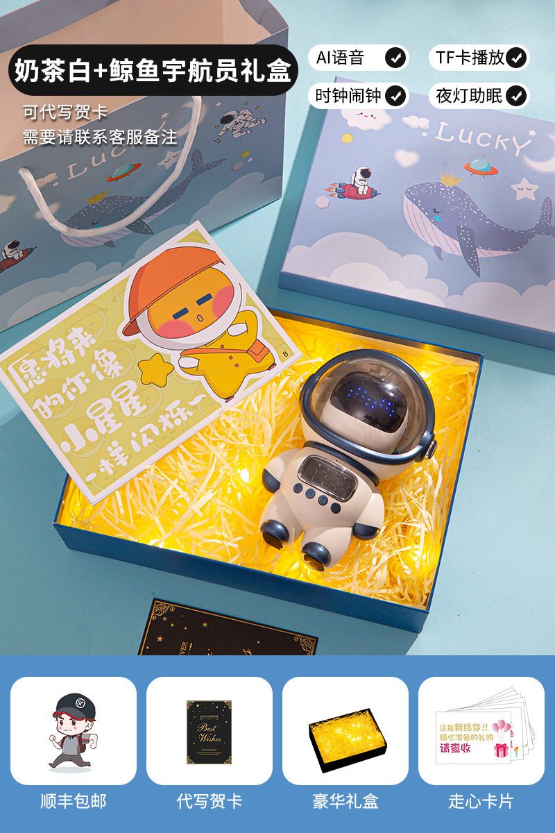 white-whale astronaut gift box [ai voice, speaker, alarm clock, night light]]