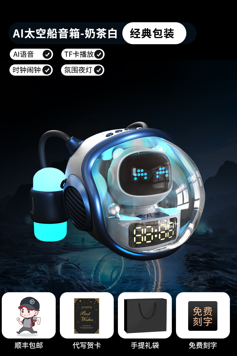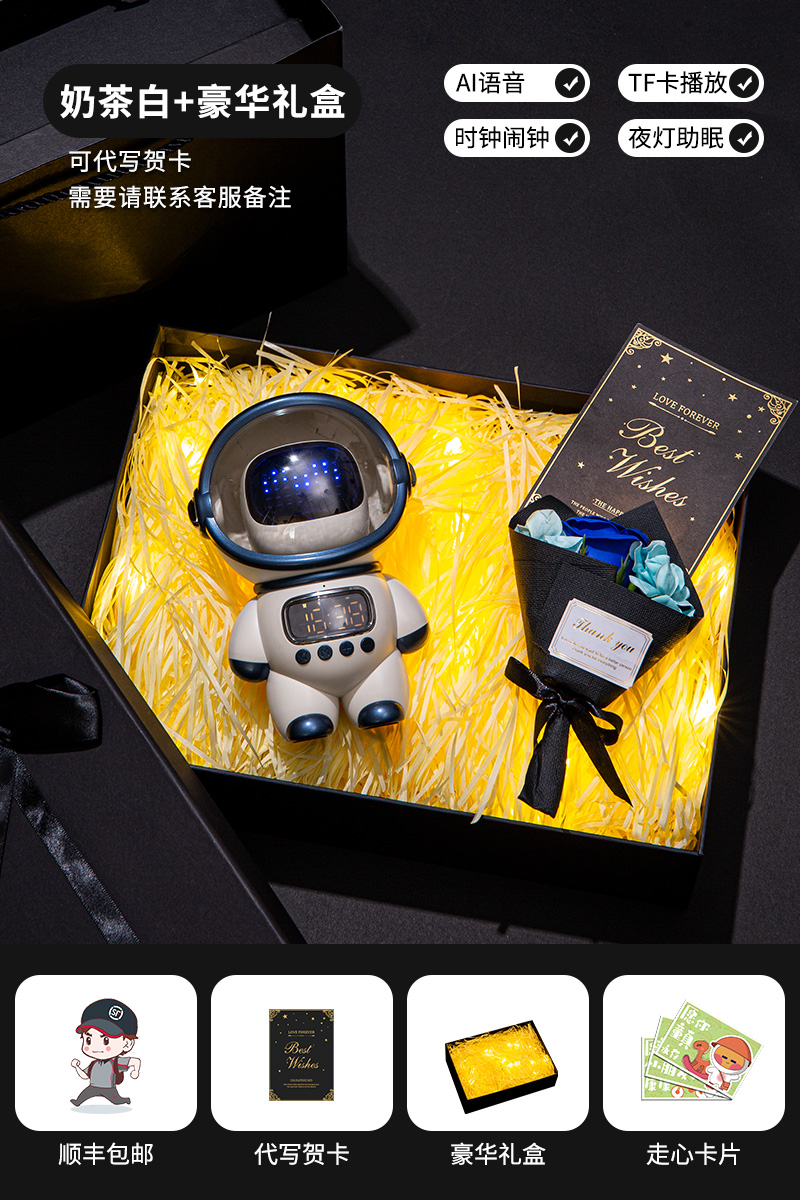 white-astronaut packaging [ai voice, speaker, alarm clock, night light]]