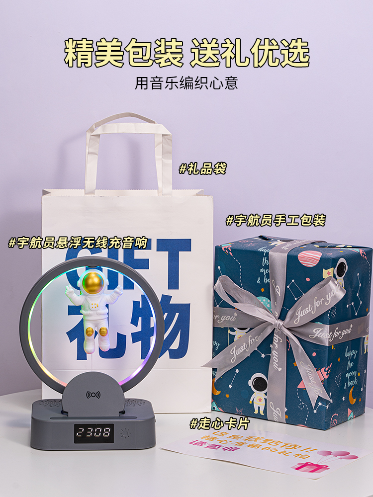 wireless charger astronaut speaker-gift packaging [rgb light + clock + wireless charger + bluetooth speaker]]