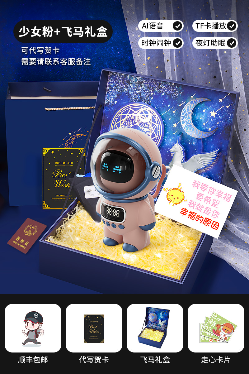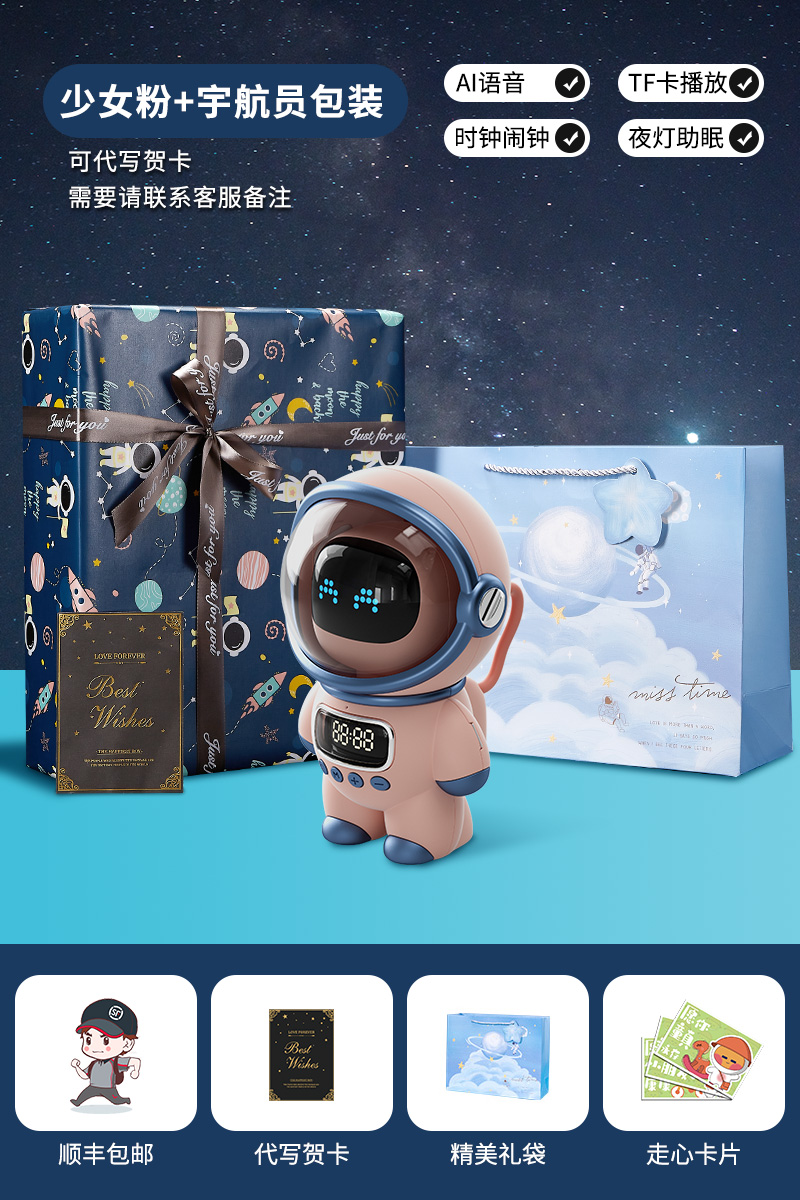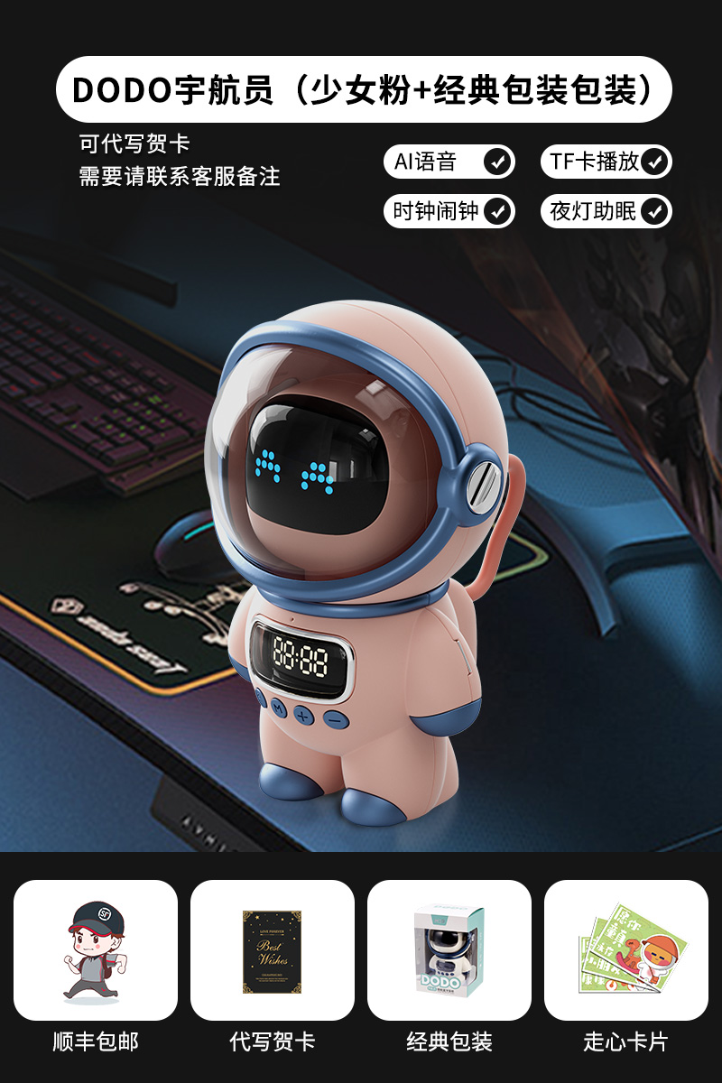 pink-astronaut packaging [ai voice, speaker, alarm clock, night light]]