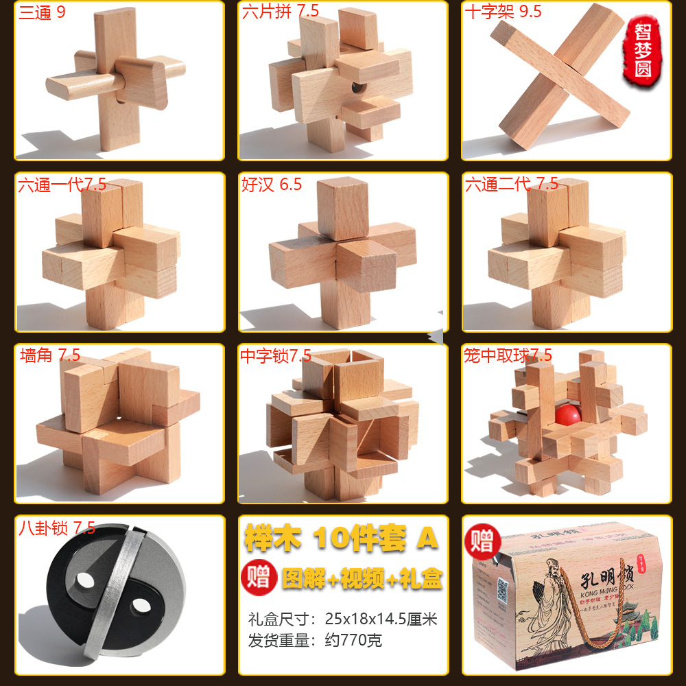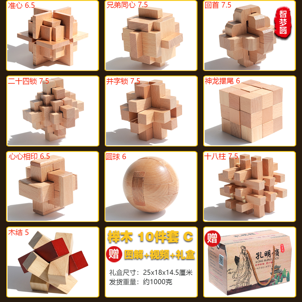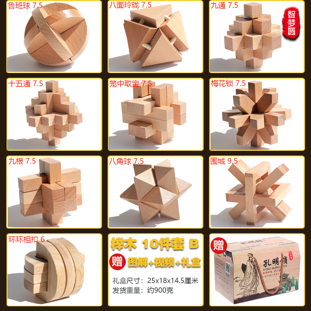 [super nice beech box] beech nine-piece set a burr puzzle collector's edition