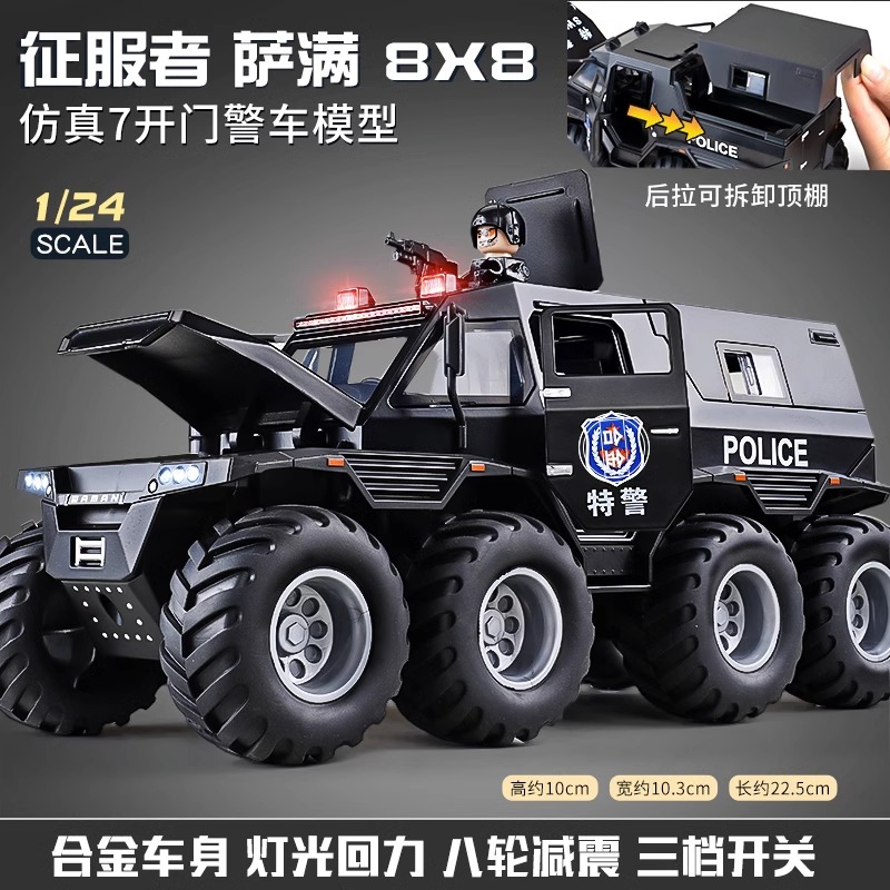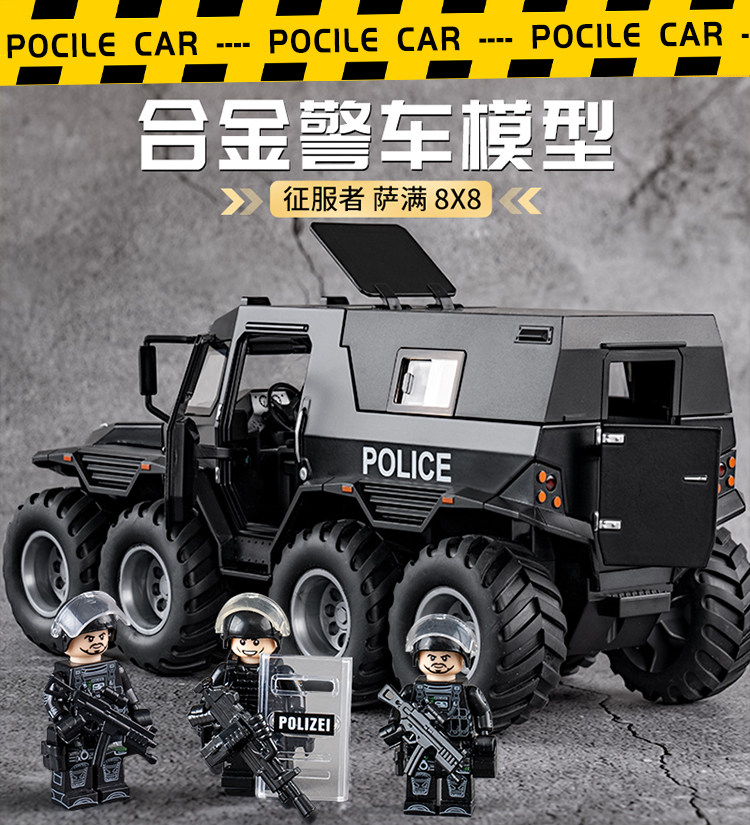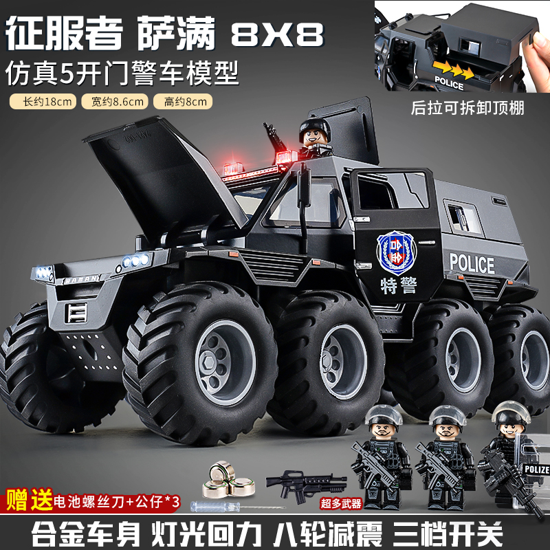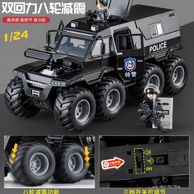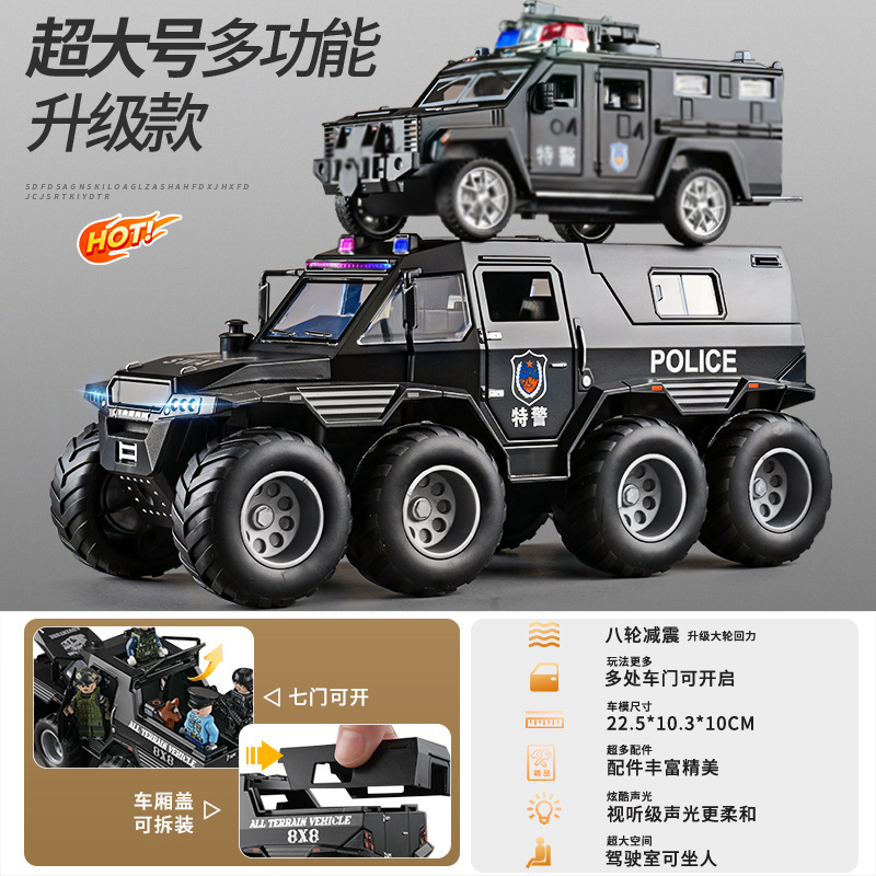 [oversized alloy] conqueror eight-wheeled off-road vehicle [special police black] +1 assembled special police doll