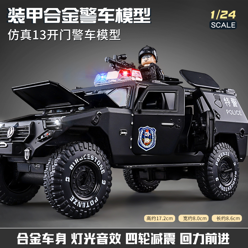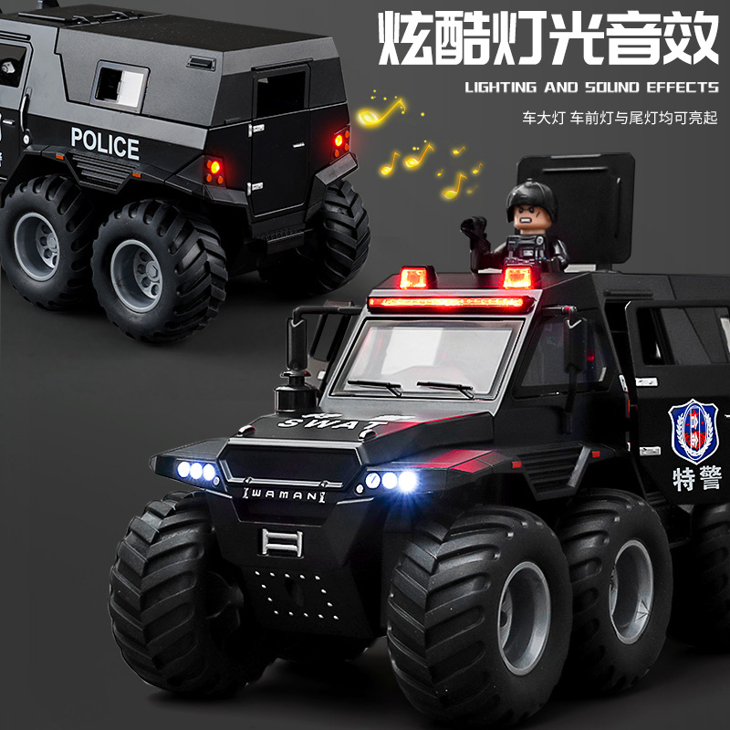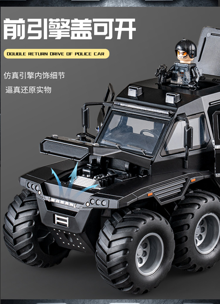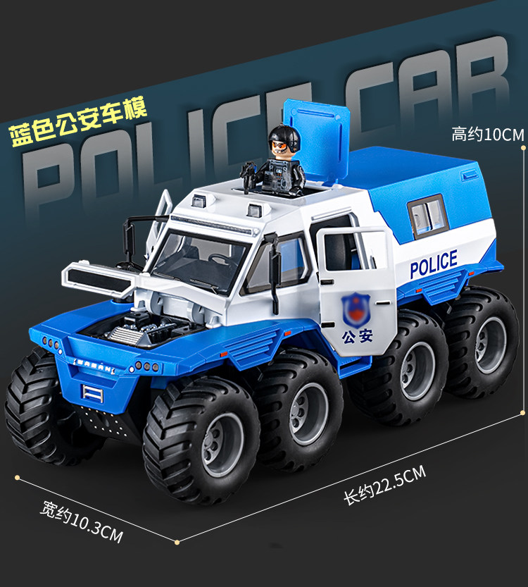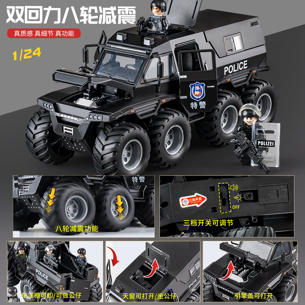 [oversized alloy] conqueror eight-wheeled off-road vehicle [special police black] +1 assembled special police doll