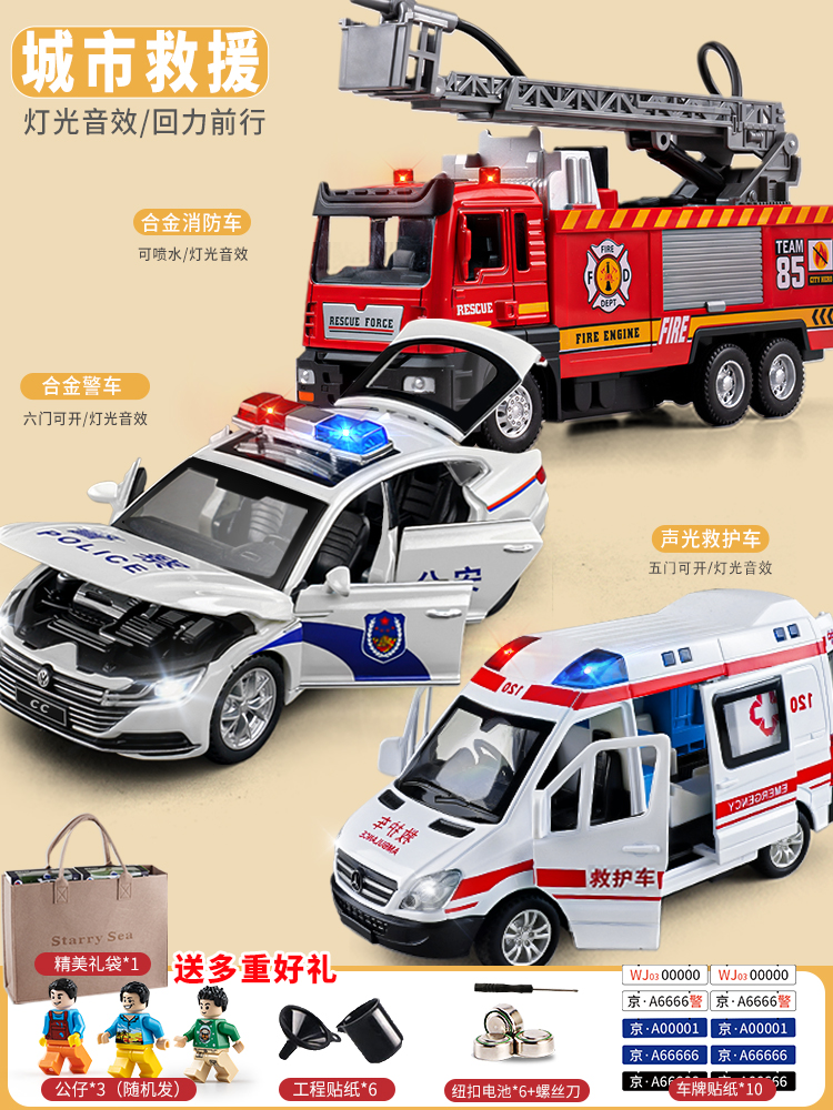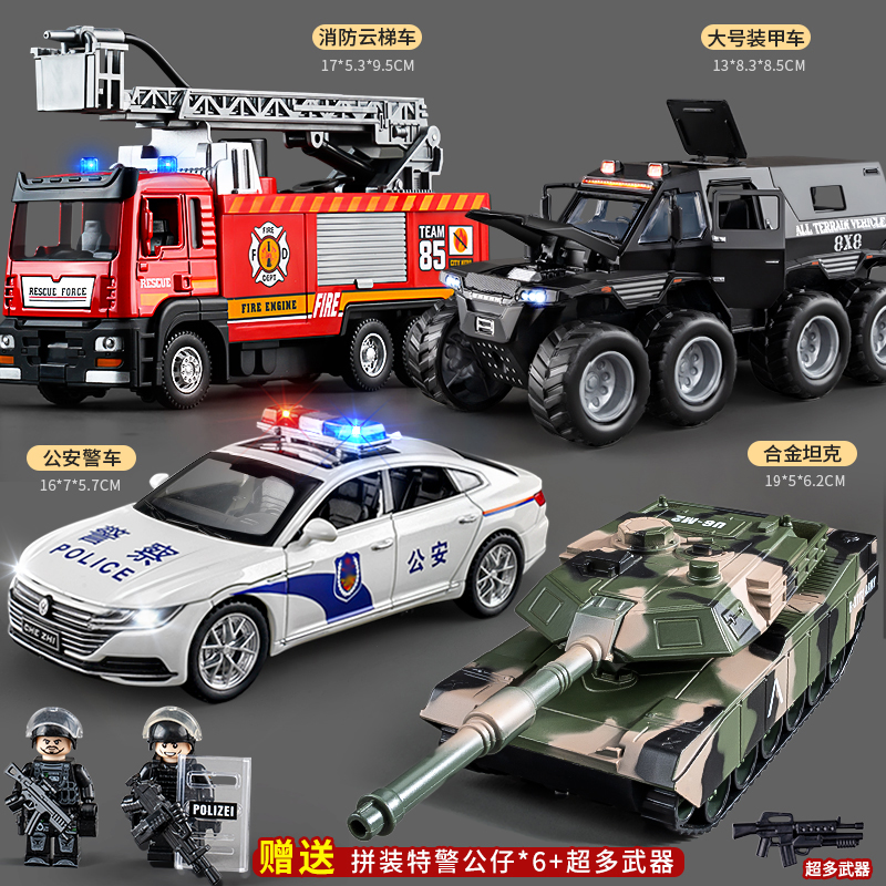 [oversized alloy] eight-wheeled police car + oversized aerial ladder fire truck for free doll