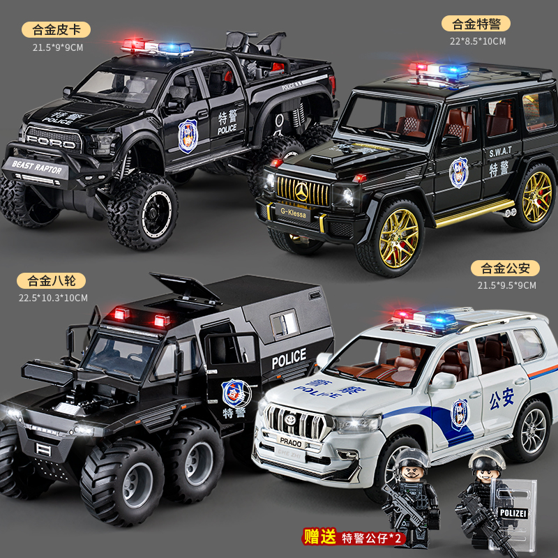 [large alloy] conqueror eight-wheeled off-road vehicle +2 special police doll