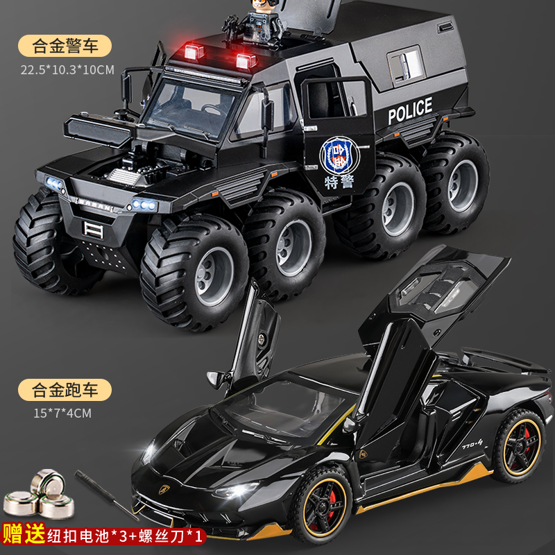 [high cost performance]]❤[oversized alloy] conqueror eight-wheeled off-road vehicle [special police black] +2 police doll