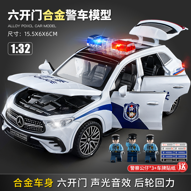 [six-door alloy] mercedes-benz police car-free 3 dolls + stickers