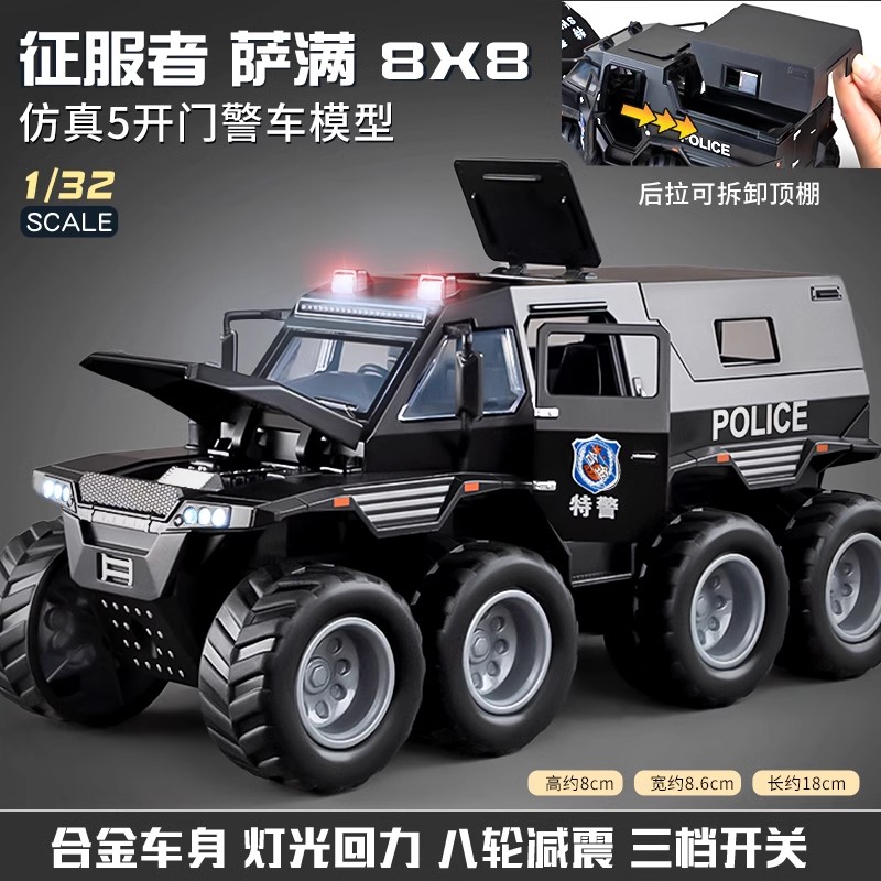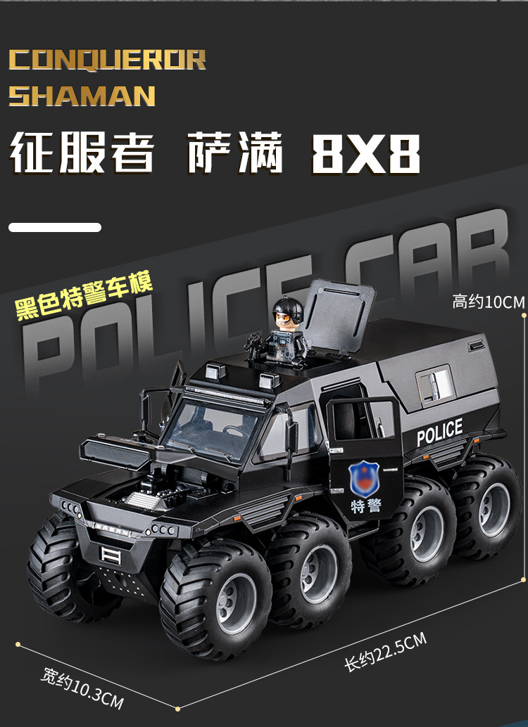 [alloy large] conqueror eight-wheeled off-road vehicle [special police black]]