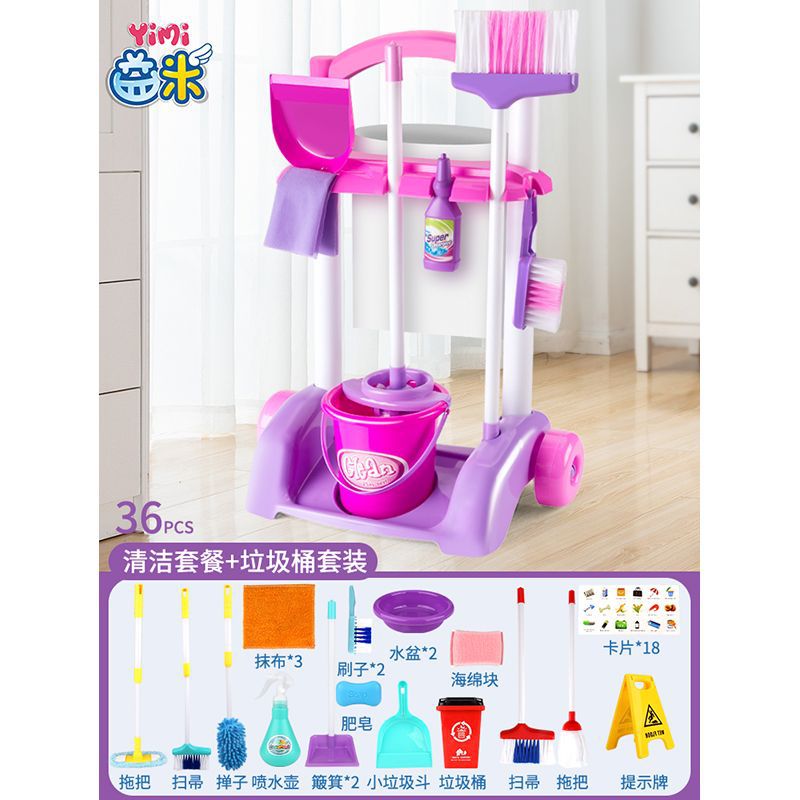 cleaning trolley purple + garbage bin set [36 pieces in total]]