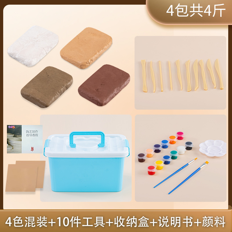 red clay 2.00kg +5 sets of wooden tools +2 sheets of oil paper