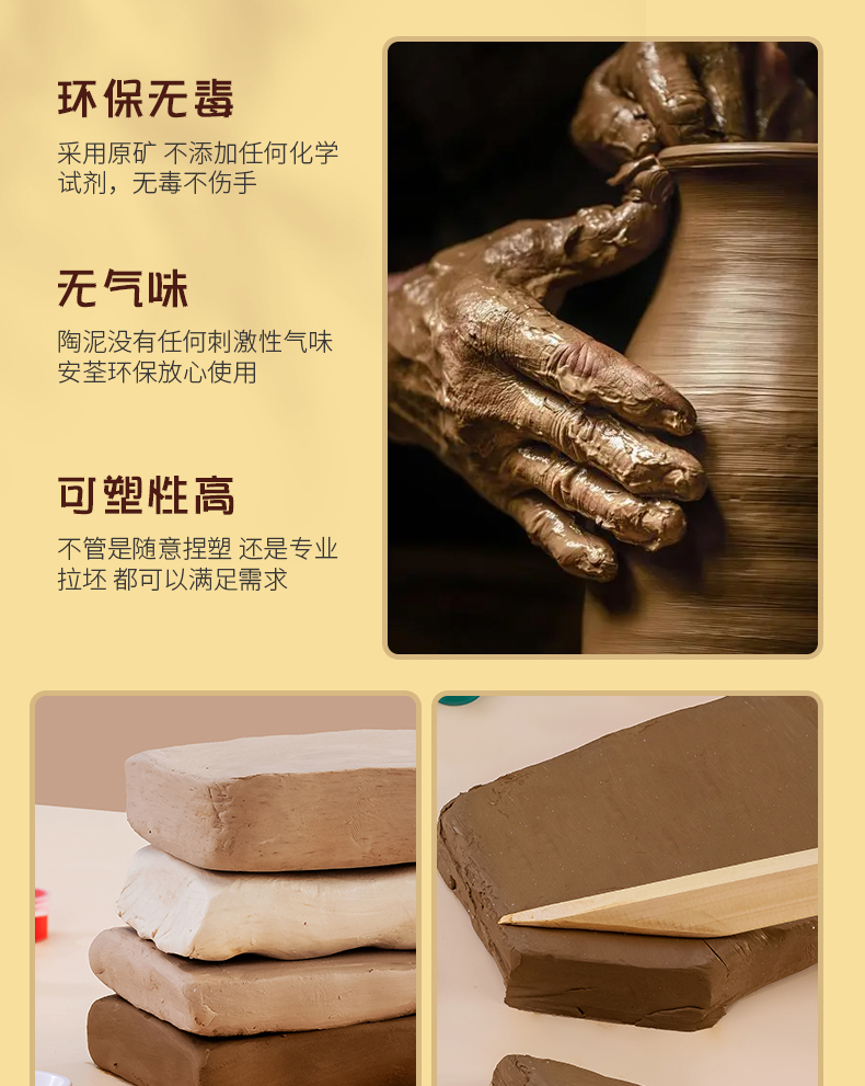 yellow clay 2.00kg +5 sets of wooden tools +2 sheets of oil paper