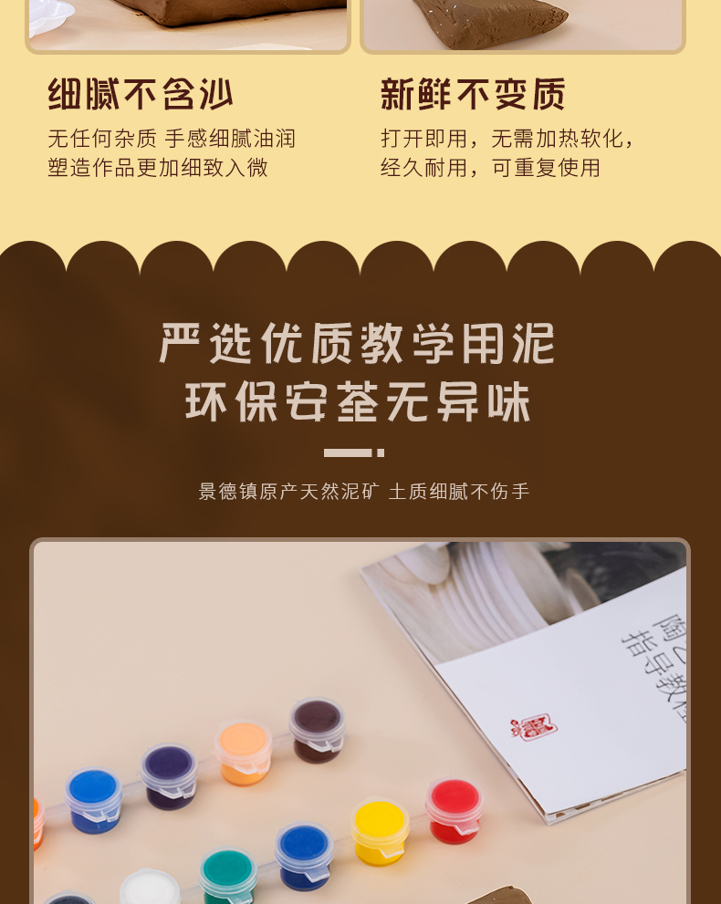 over white clay 2.00kg +5 sets of wooden tools +2 sheets of oil paper