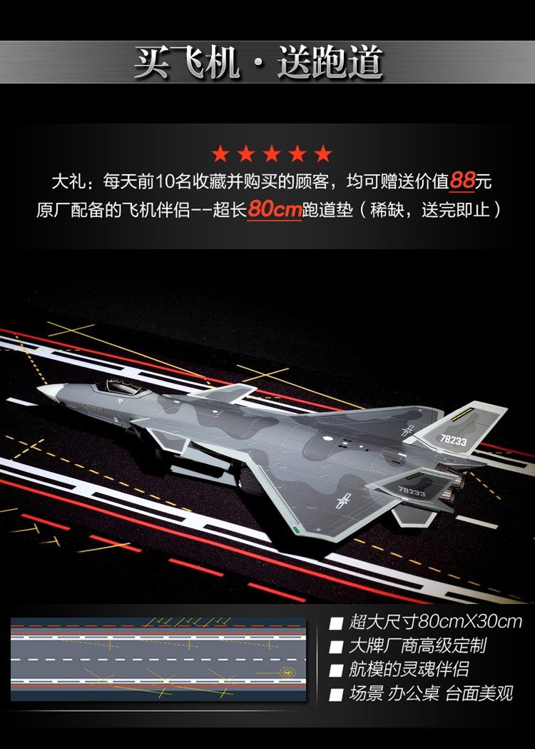 flagship avic version 1:60 j-20 (commemorative) send alloy bracket + 80cm runway