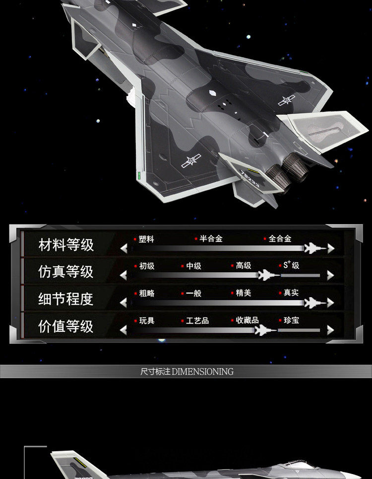 flagship avic version 1:100 j-20 (active service) send alloy bracket + 80cm runway