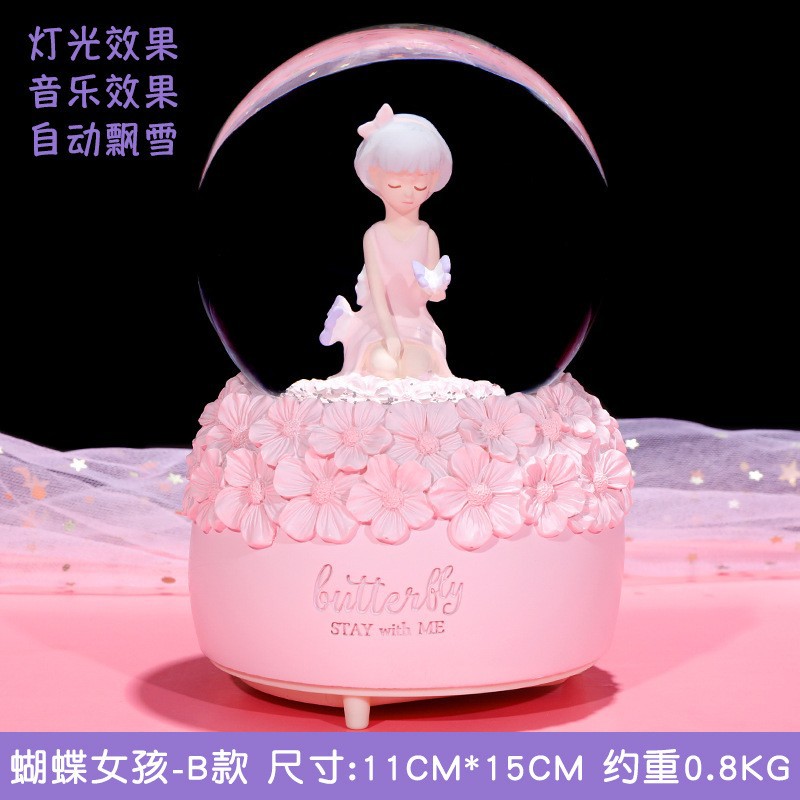 butterfly girl pink large automatic snowflake + music lights)