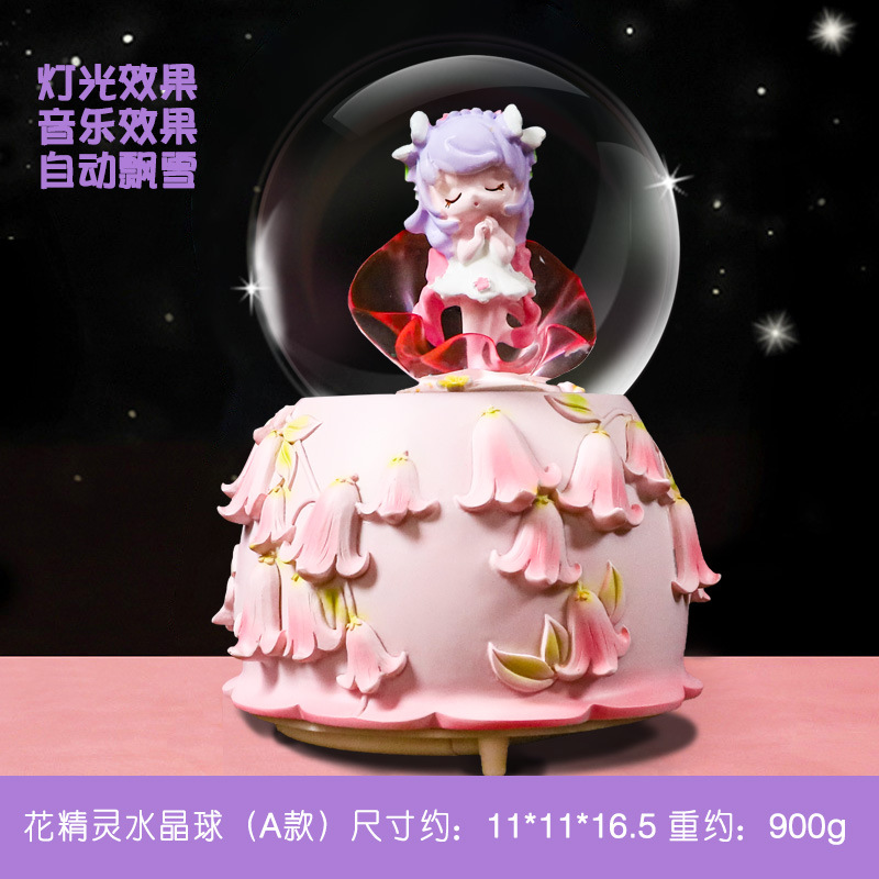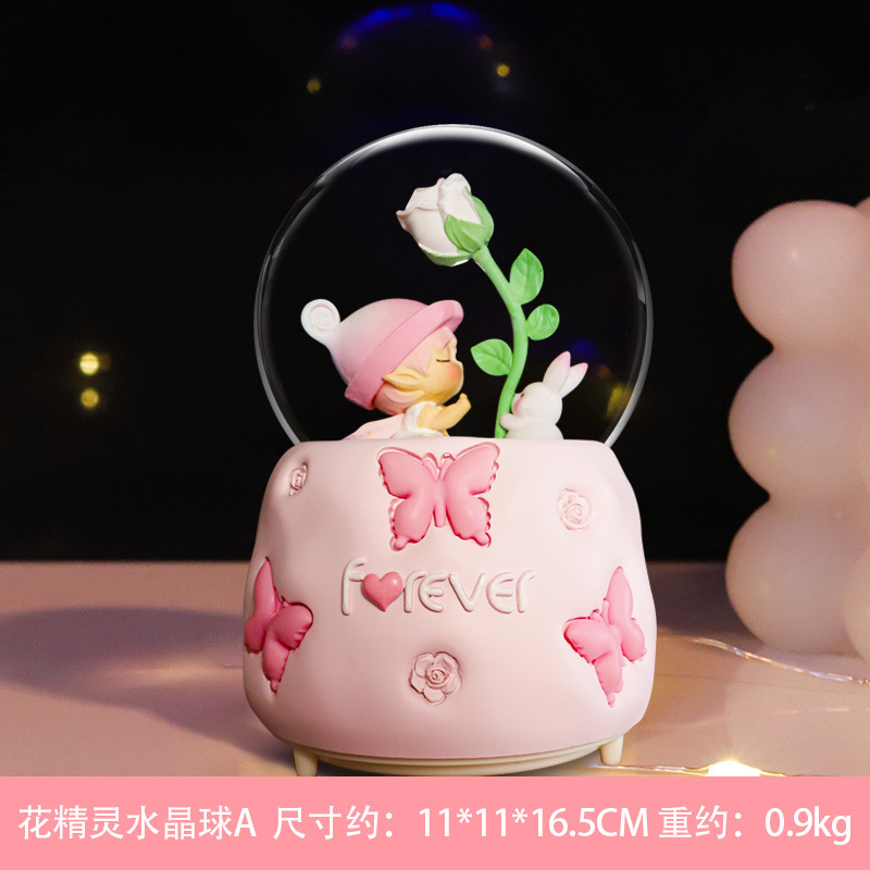 flower elf girl pink large automatic snowflake + music lights)