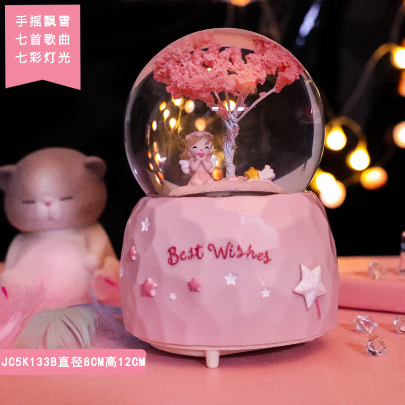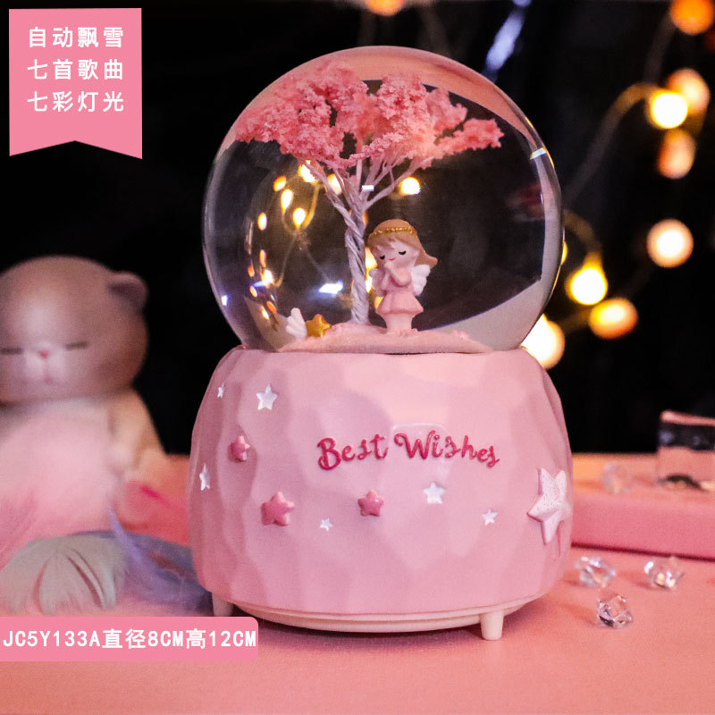 cherry blossom girl pray medium automatic snowflake (music lights)