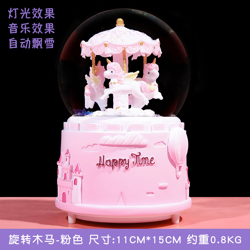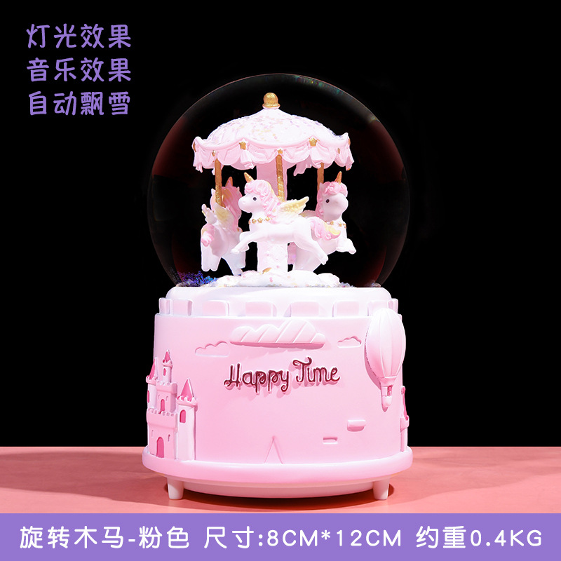 carousel pink large-sized internal rotation automatic snow
