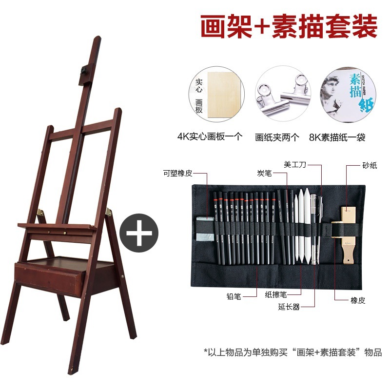 red walnut-color beech drawer easel + sketch set 1 generation common style foldable