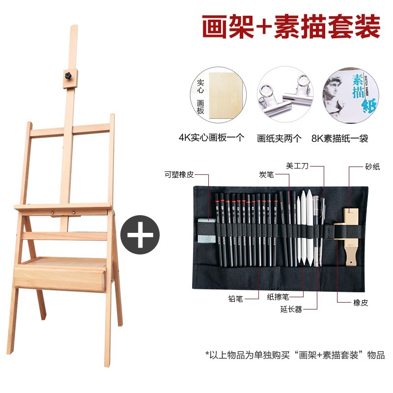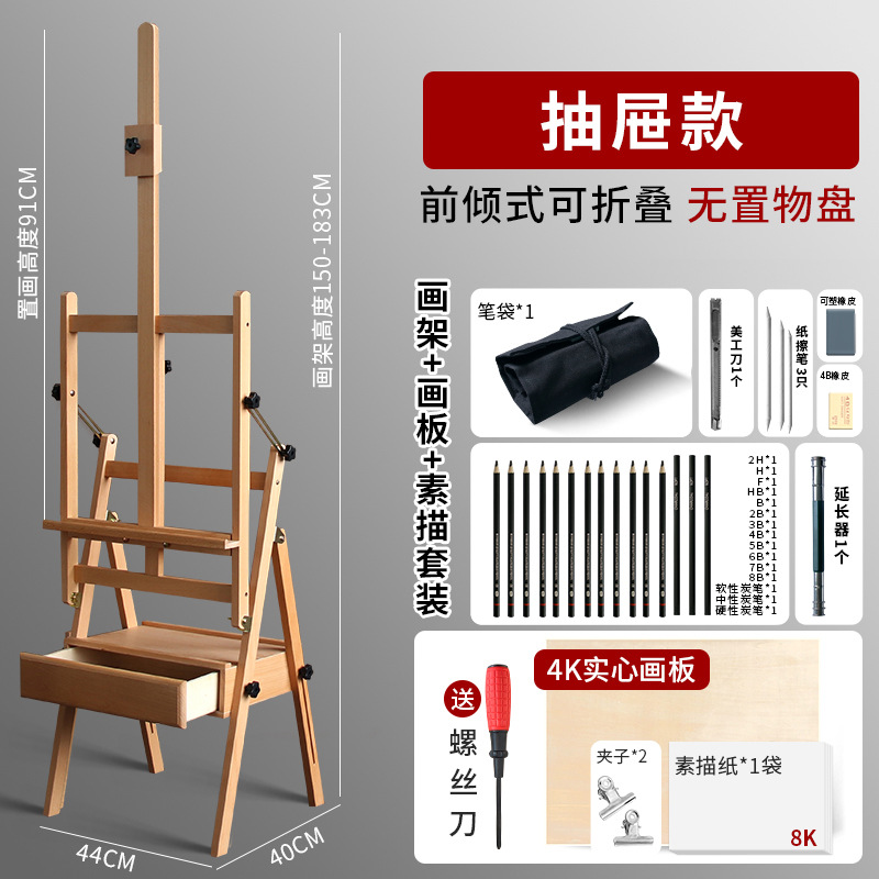 raw wood beech drawer easel + sketch set 1 generation common style foldable